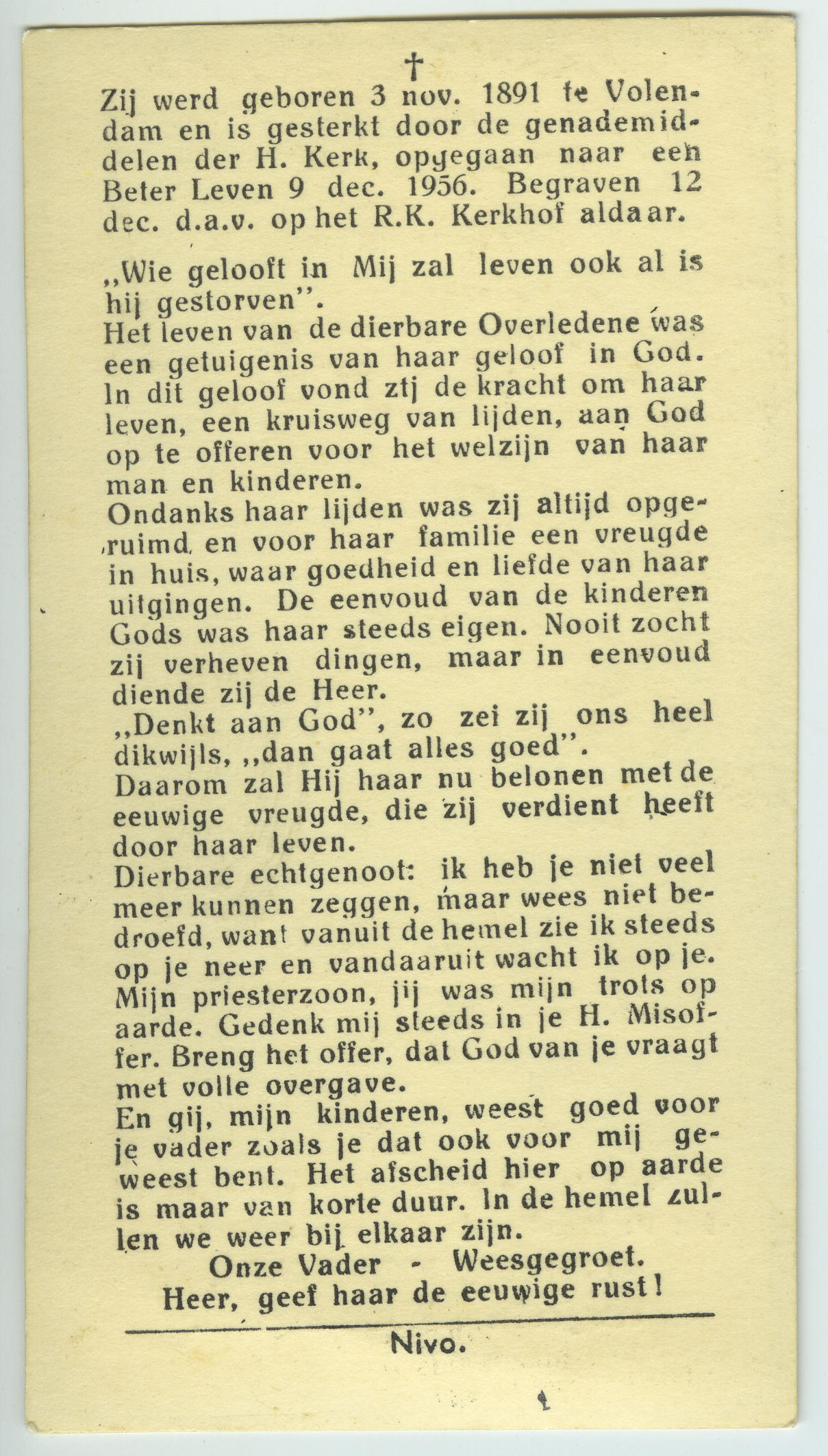 Bidprentje van Agnes Verrijnen, 1933 (bidprentje)