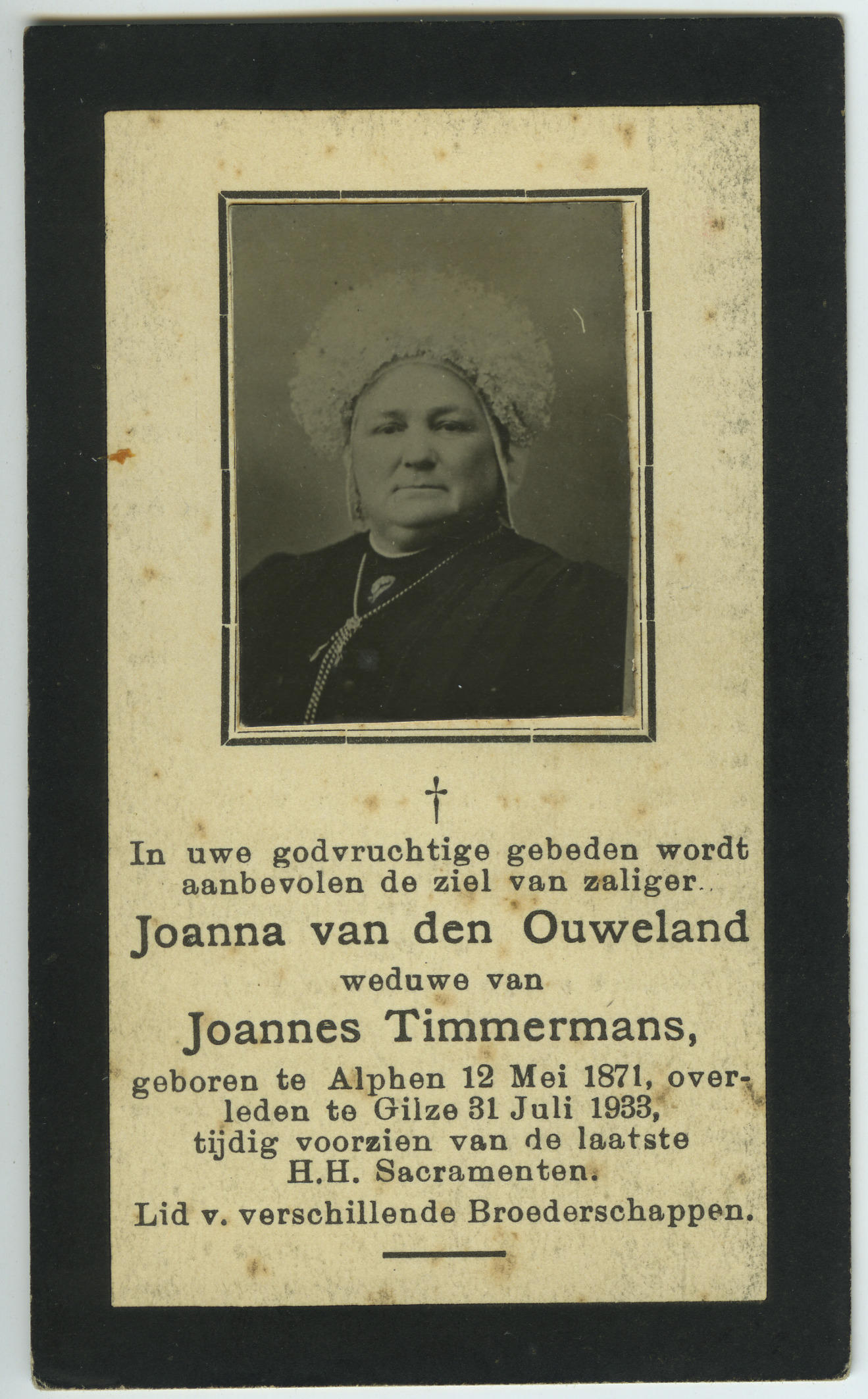 Bidprentje van Joanna van den Ouweland, 1933 (bidpre...