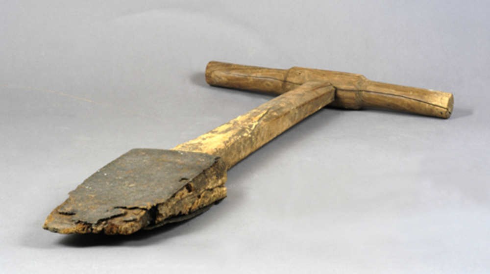 ijzeren dennenpoter met houten handvat, begin 20e eeuw