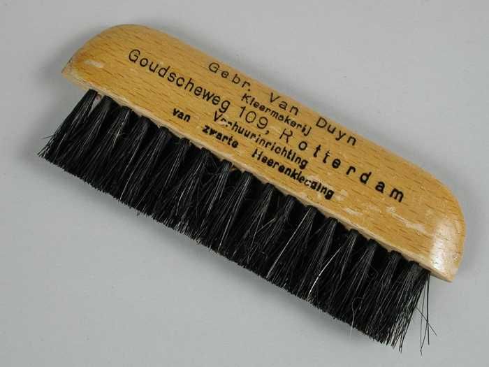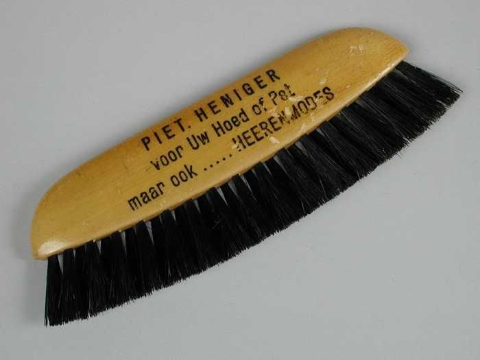 Houten hoedenborstel met "Piet. Heniger", zwart vark...