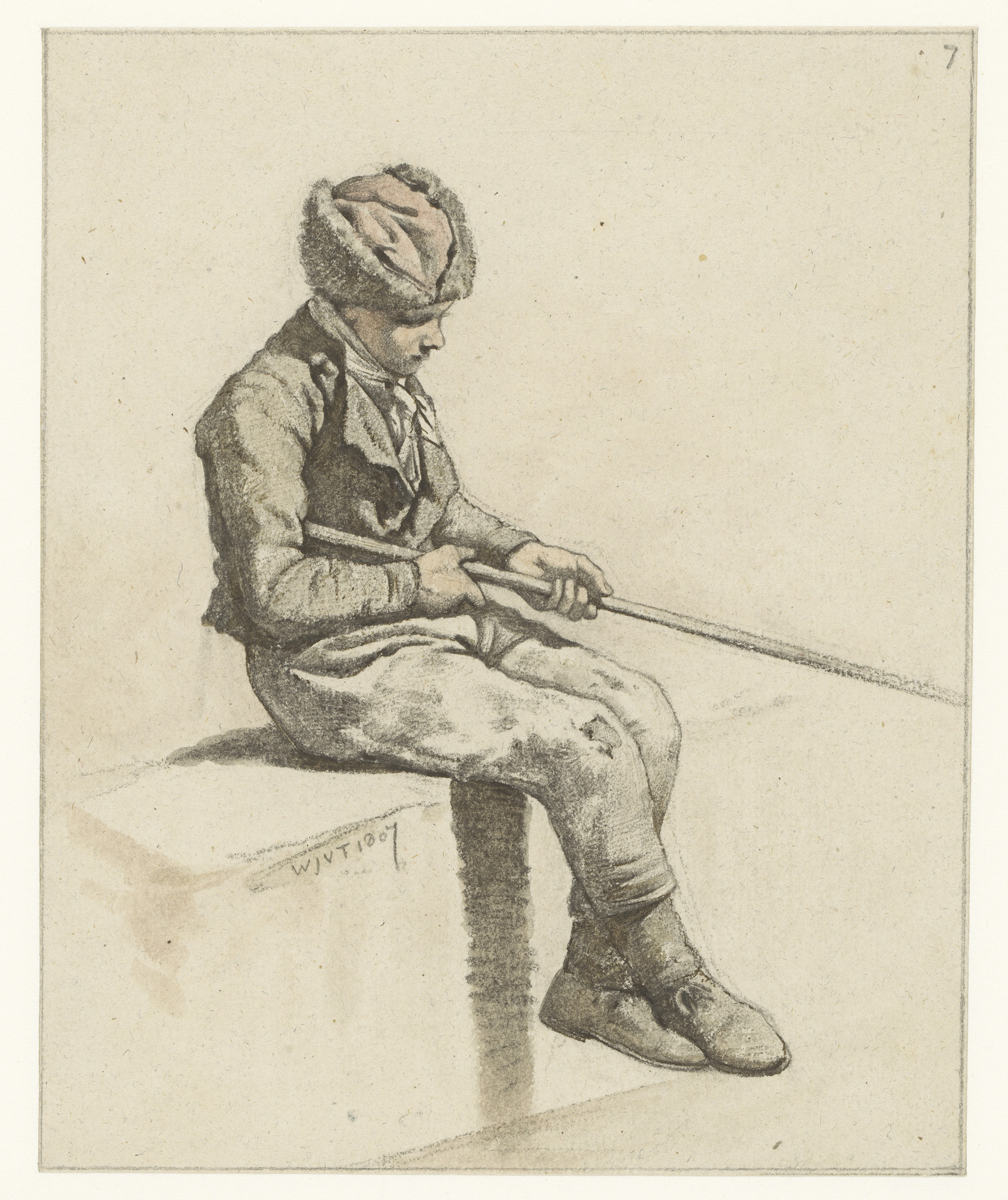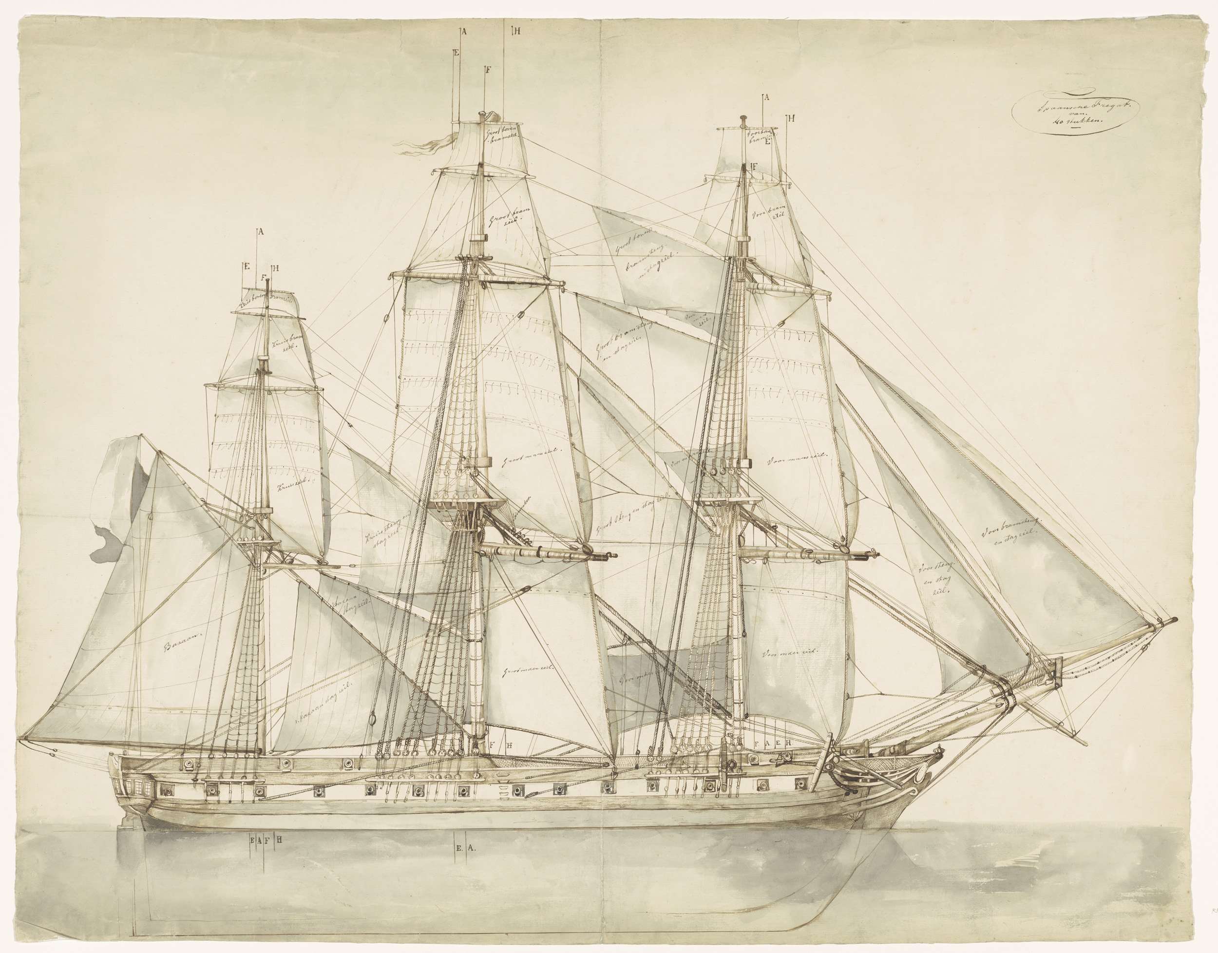 Een zeilschip en twee matrozen