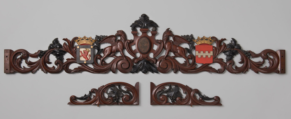 Houtsnijwerk met ranken, griffioenen en wapens
