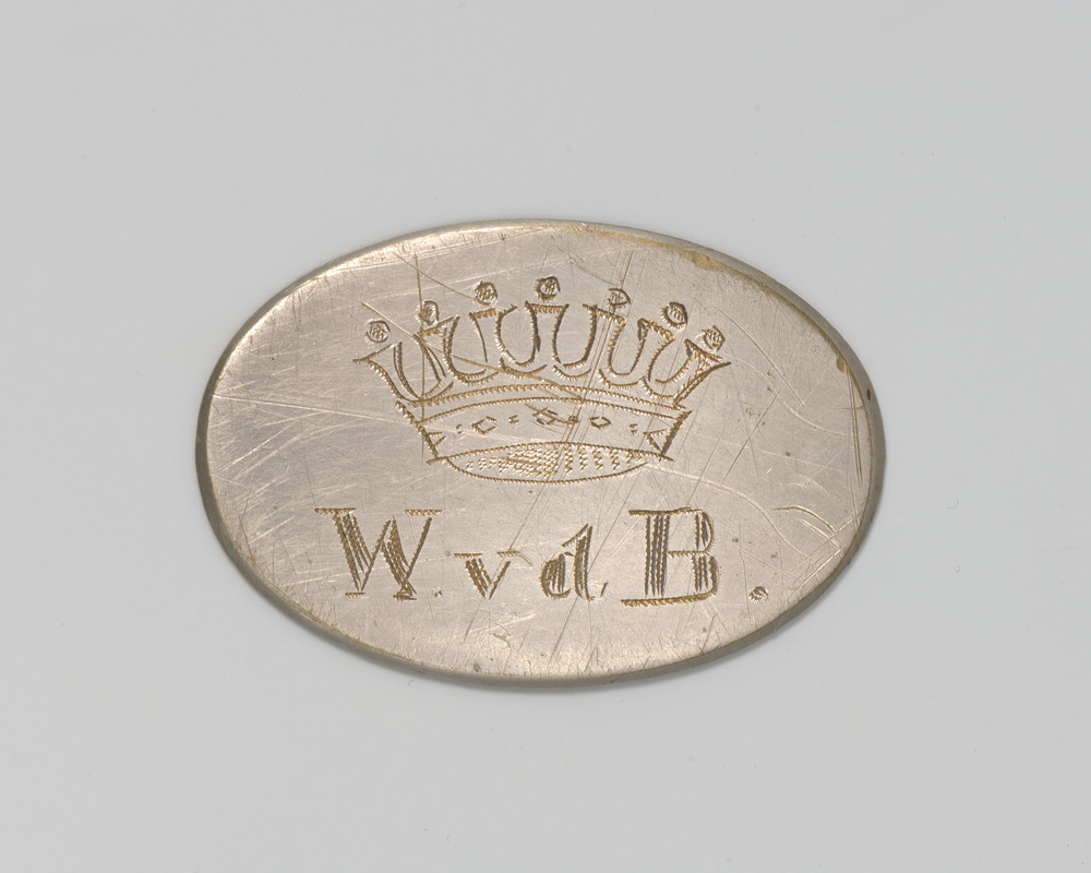 Schildje met een kroon en initialen