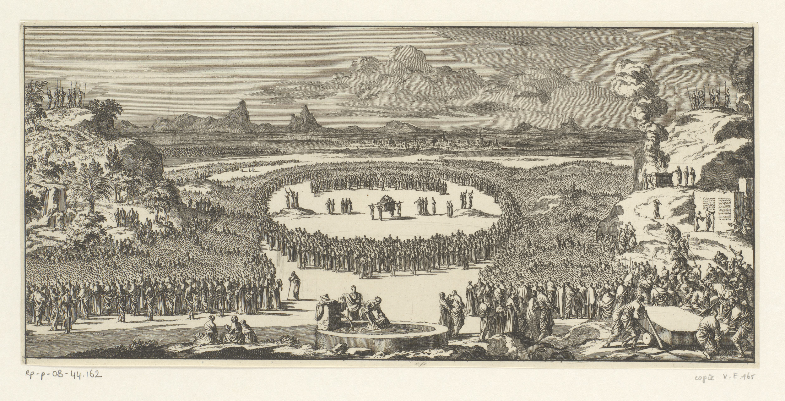 Israëlieten brengen brand- en vredeoffers op de berg...