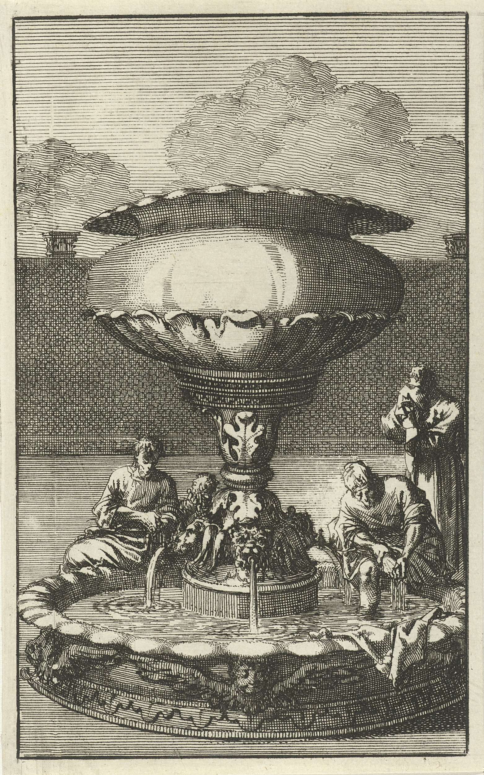 Koperen wasvat of spoelbekken in de hof van het tabe...