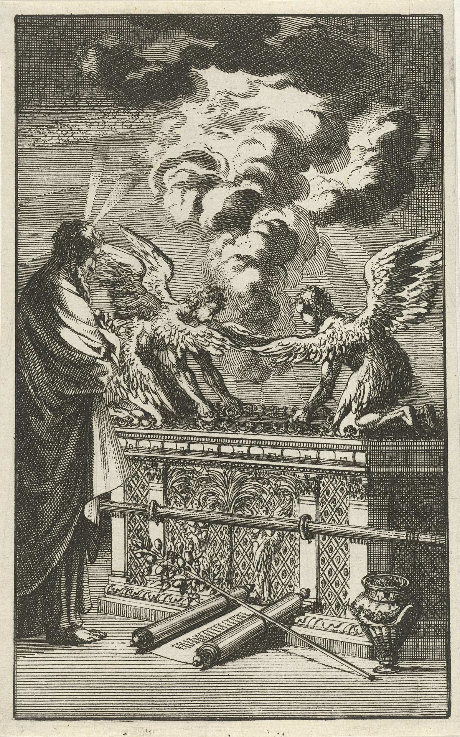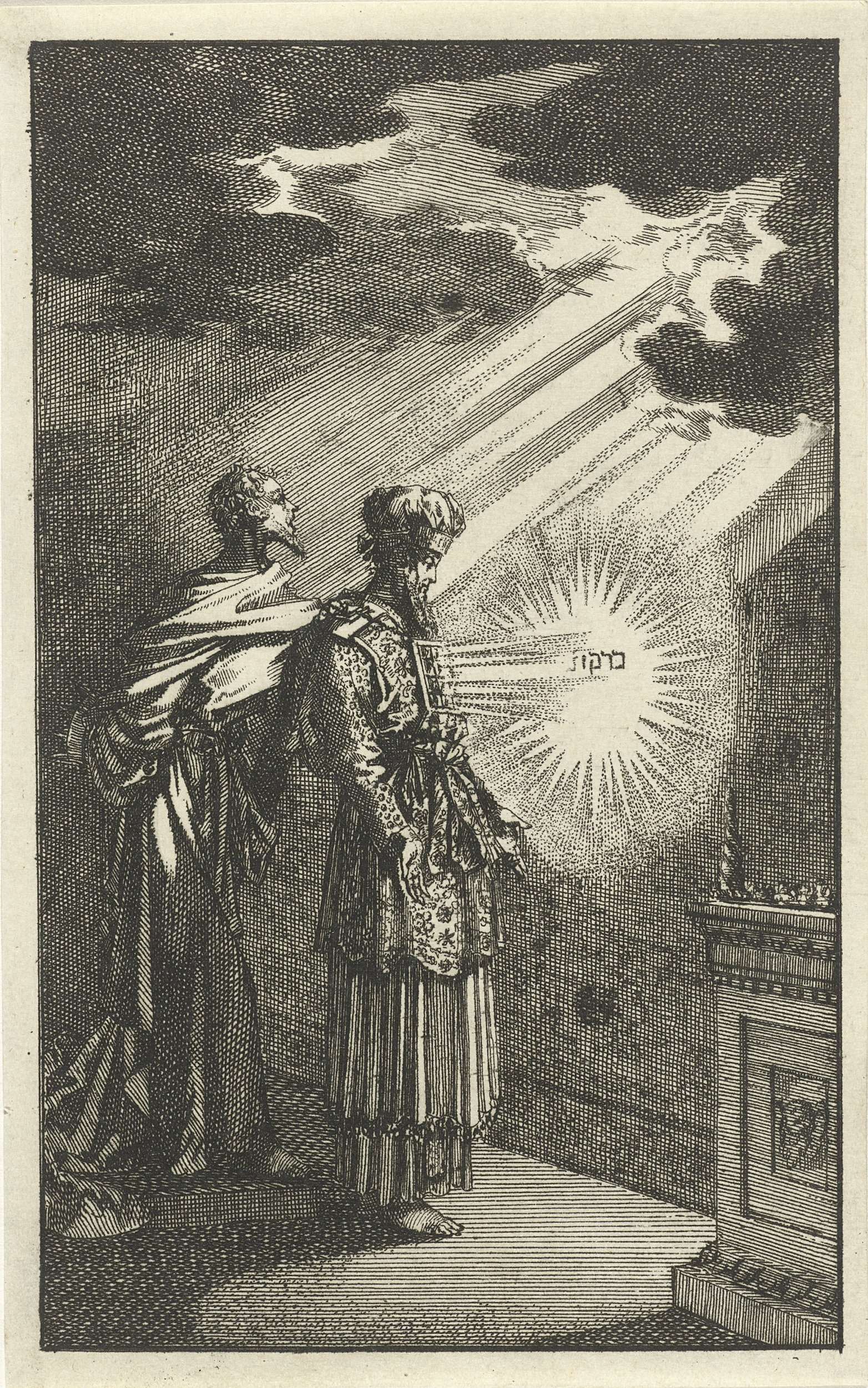 Manoach en zijn vrouw zien de engel in de vlam van h...