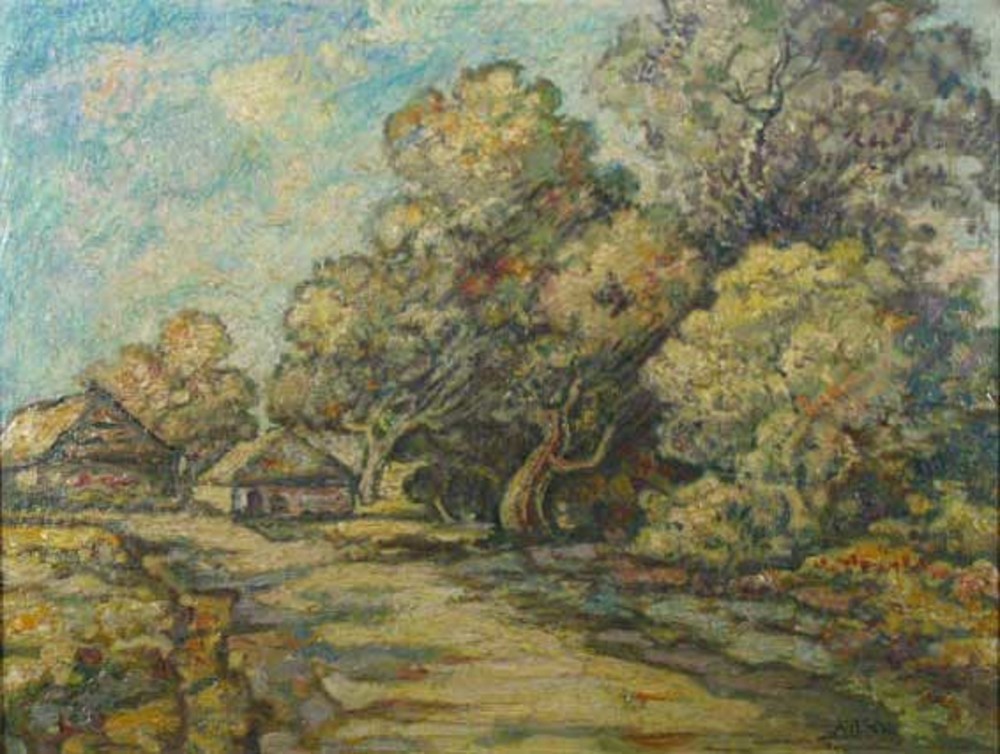 Schilderij, olieverf op board, voorstellende landsch...