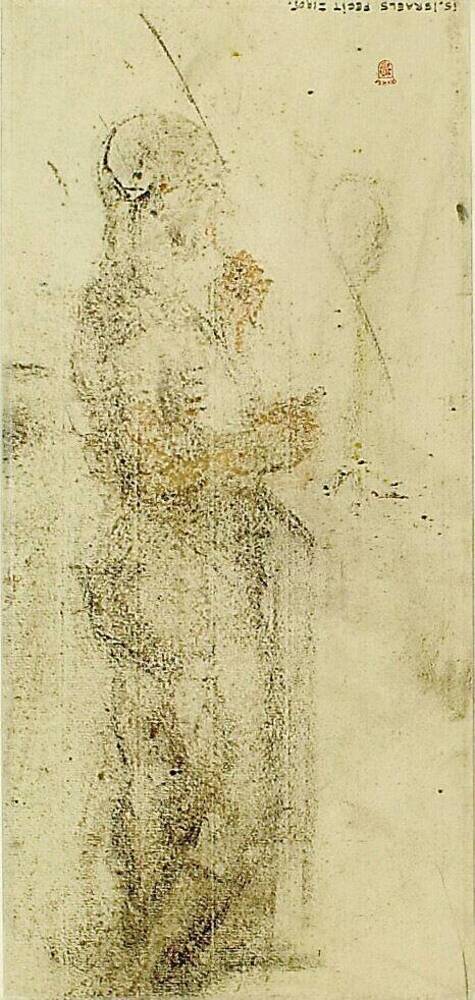 Tegel in transfer-techniek, voorstellende een figuur...
