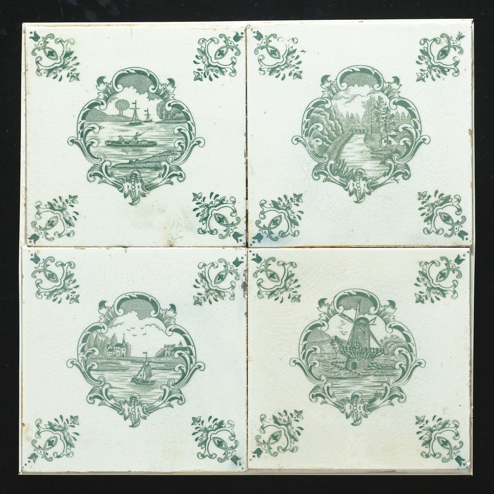 Tegelveld van keramiek, voorstellende waterlandschap...