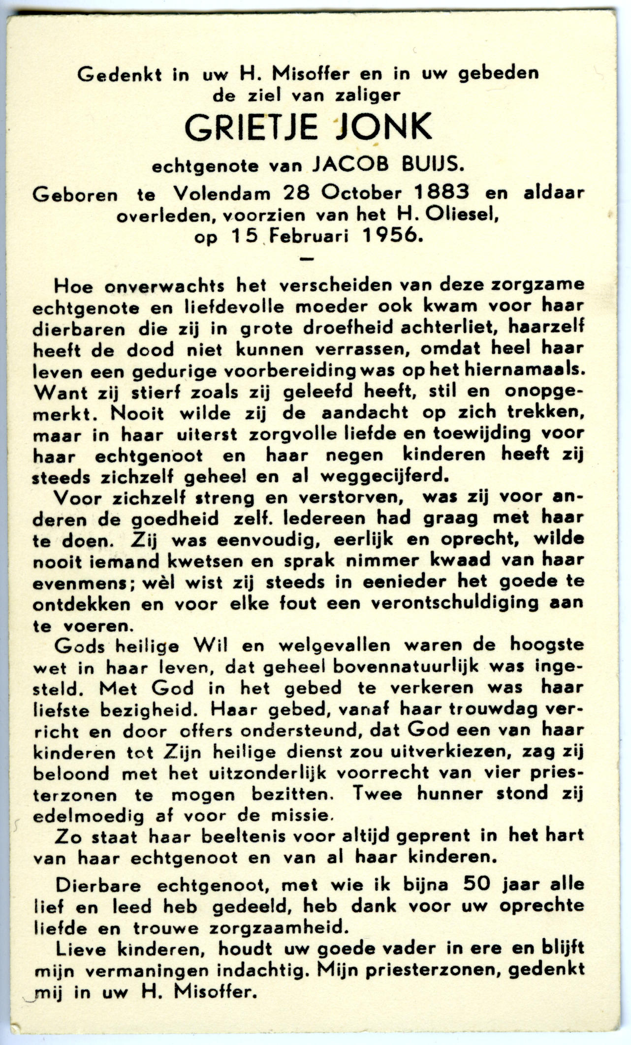 Bidprentje van Grietje Jonk, 1956 (bidprentje)