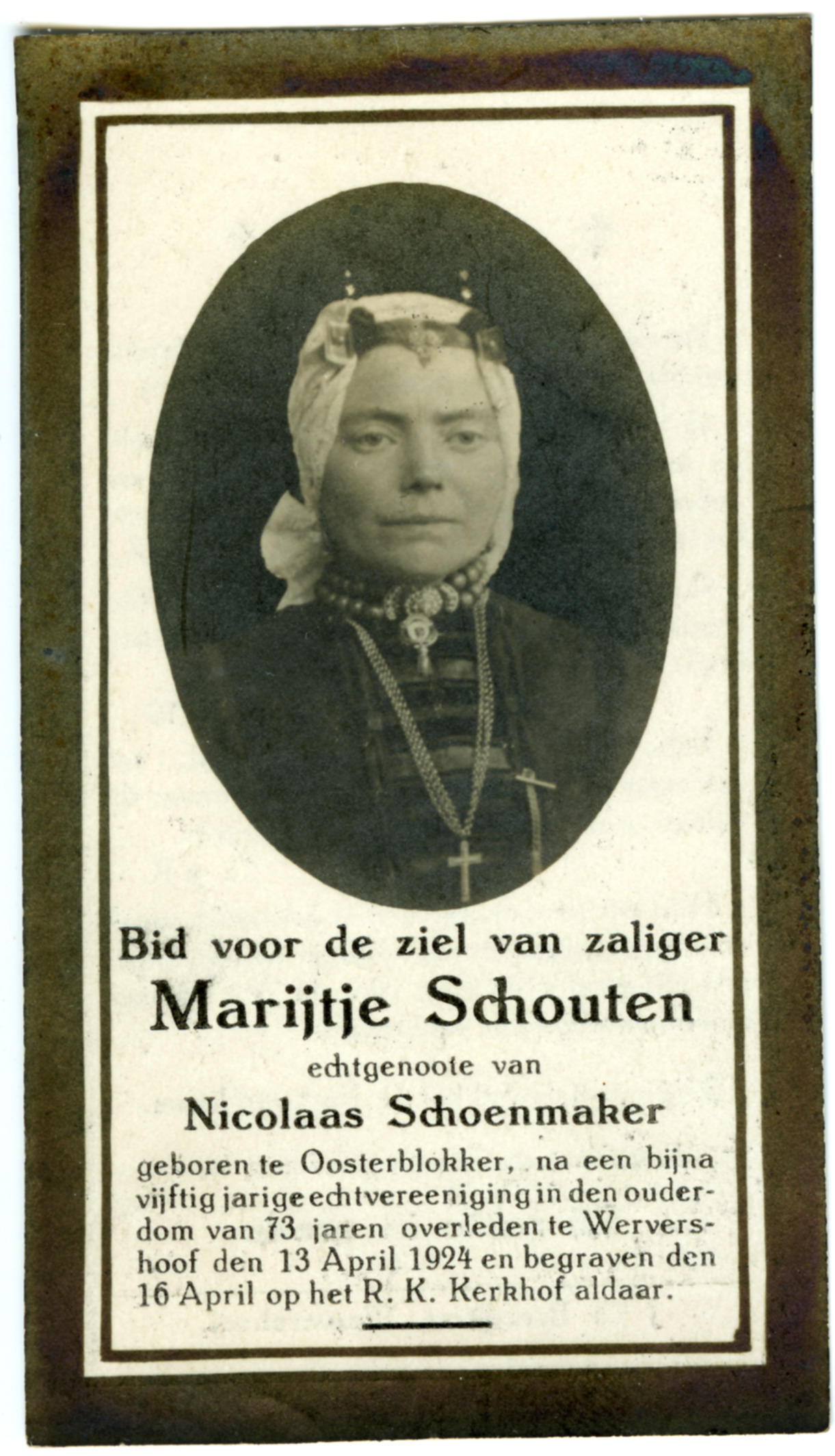 Bidprentje van Marijtje Schouten, 1924 (bidprentje)
