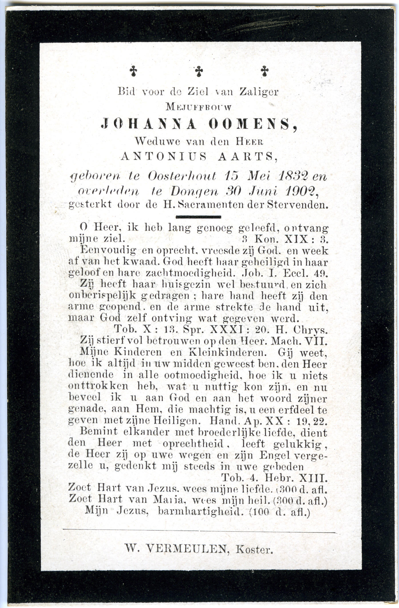 Bidprentje van Johanna Oomens, 1902 (bidprentje)