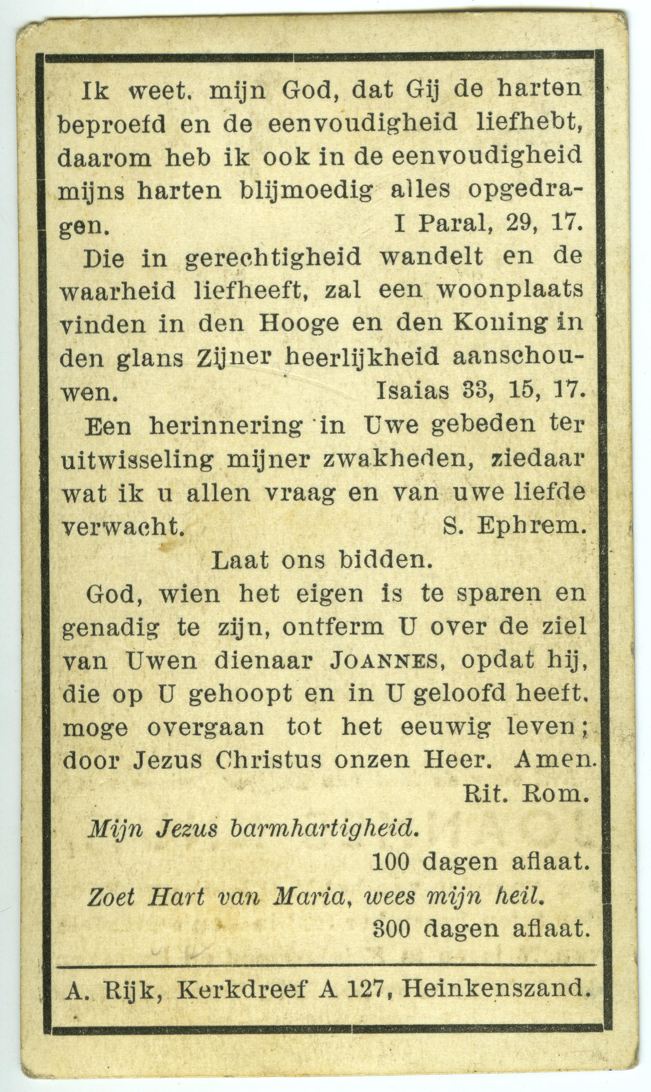 Bidprentje van Jan Buis, 1953 (bidprentje)