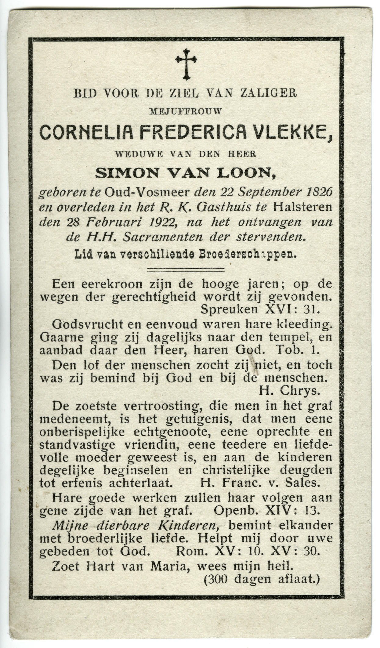 Bidprentje van Cornelia Frederica Vlekke, 1922 (bidp...
