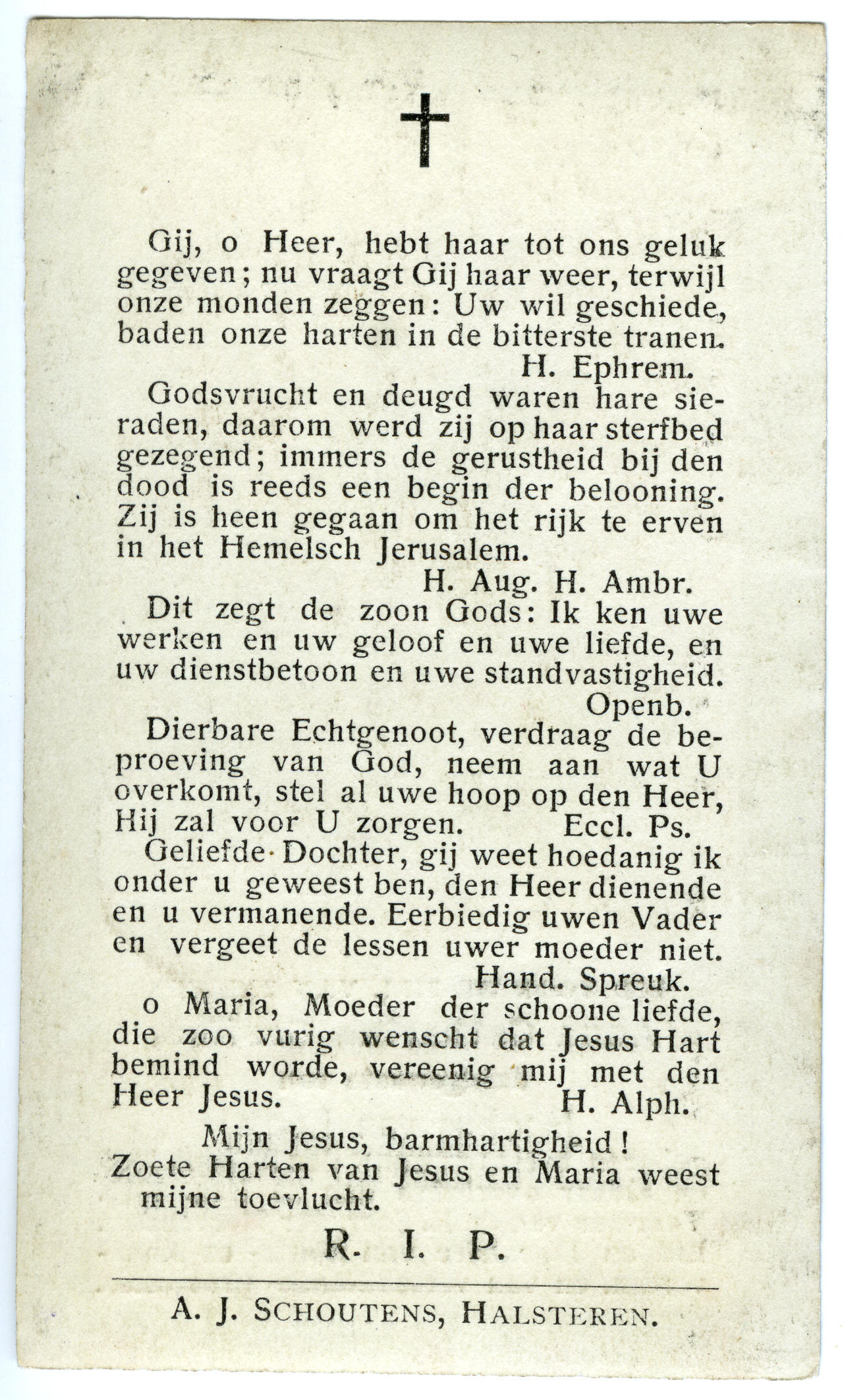 Bidprentje van Marijtje Schouten, 1924 (bidprentje)