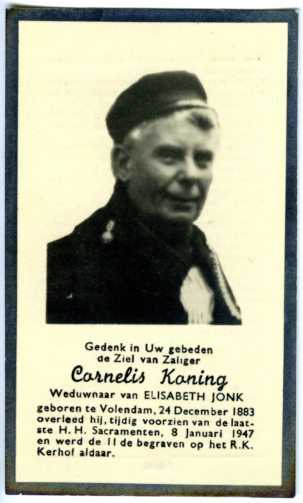 Bidprentje van Cornelis Koning, 1947 (bidprentje)