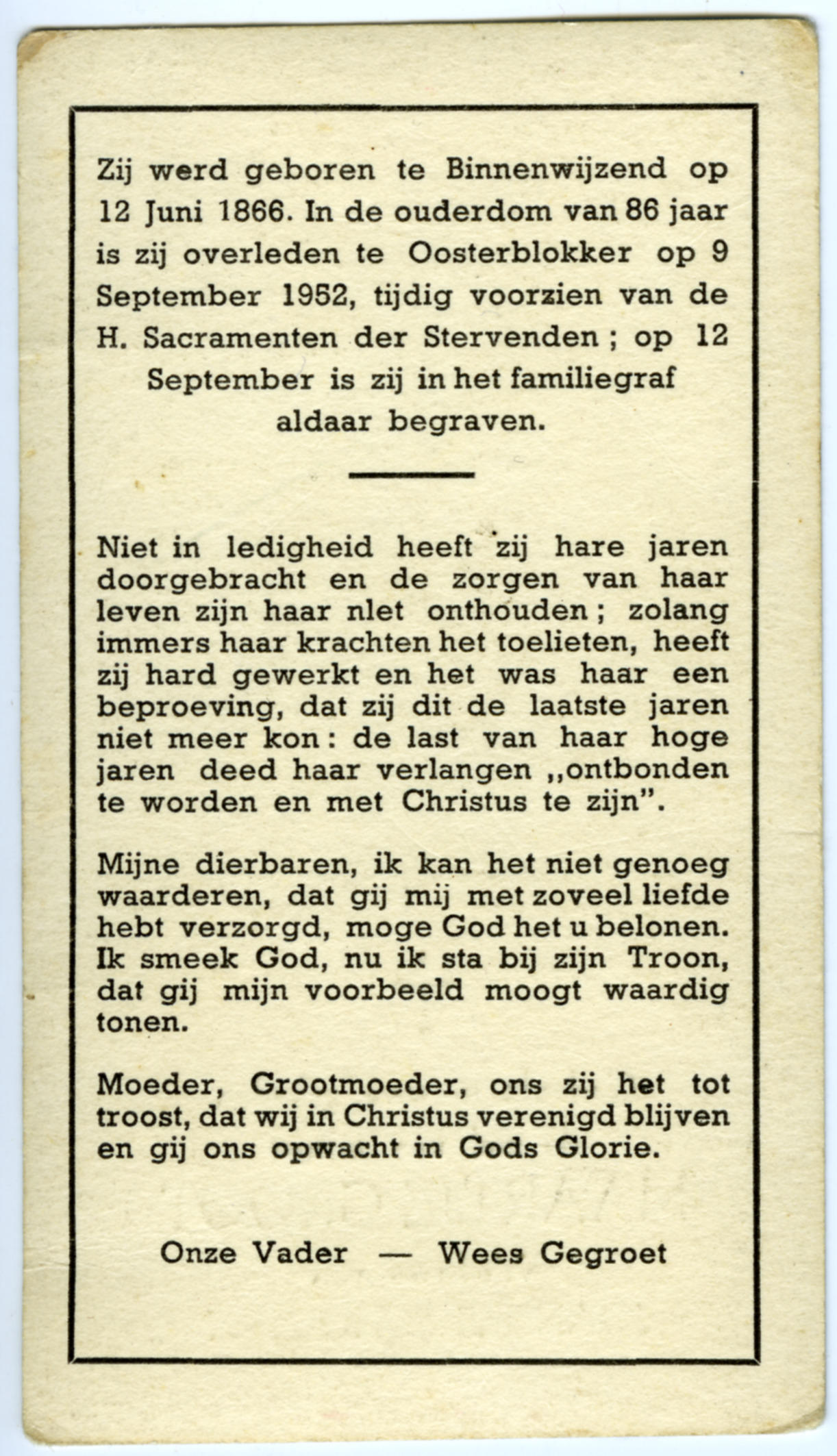 Bidprentje van Maartje Groot, 1952 (bidprentje)