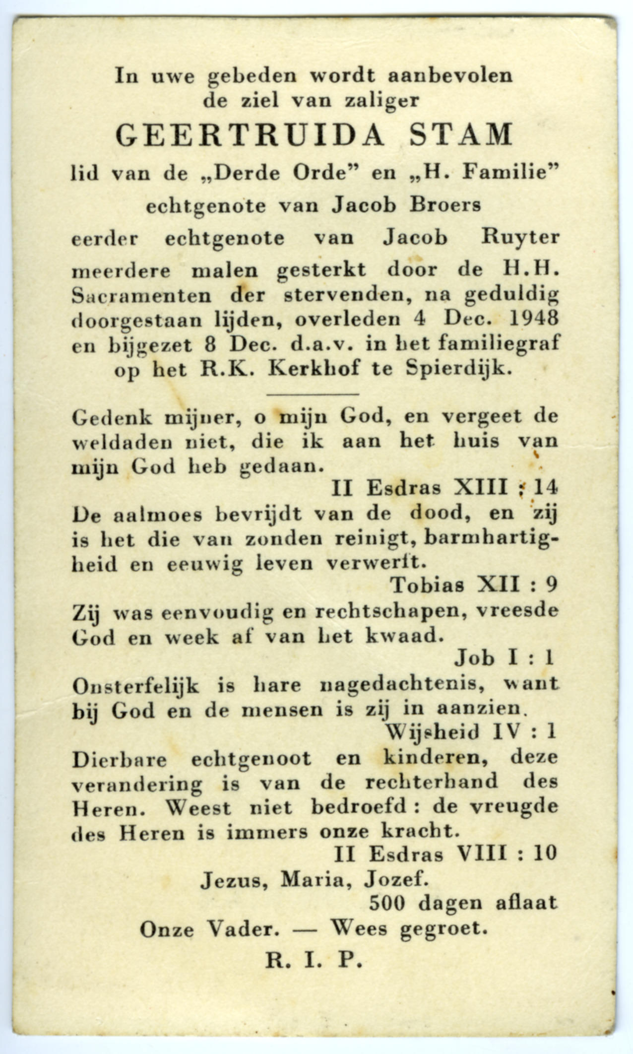 Bidprentje van Geertruida Stam, 1948 (bidprentje)