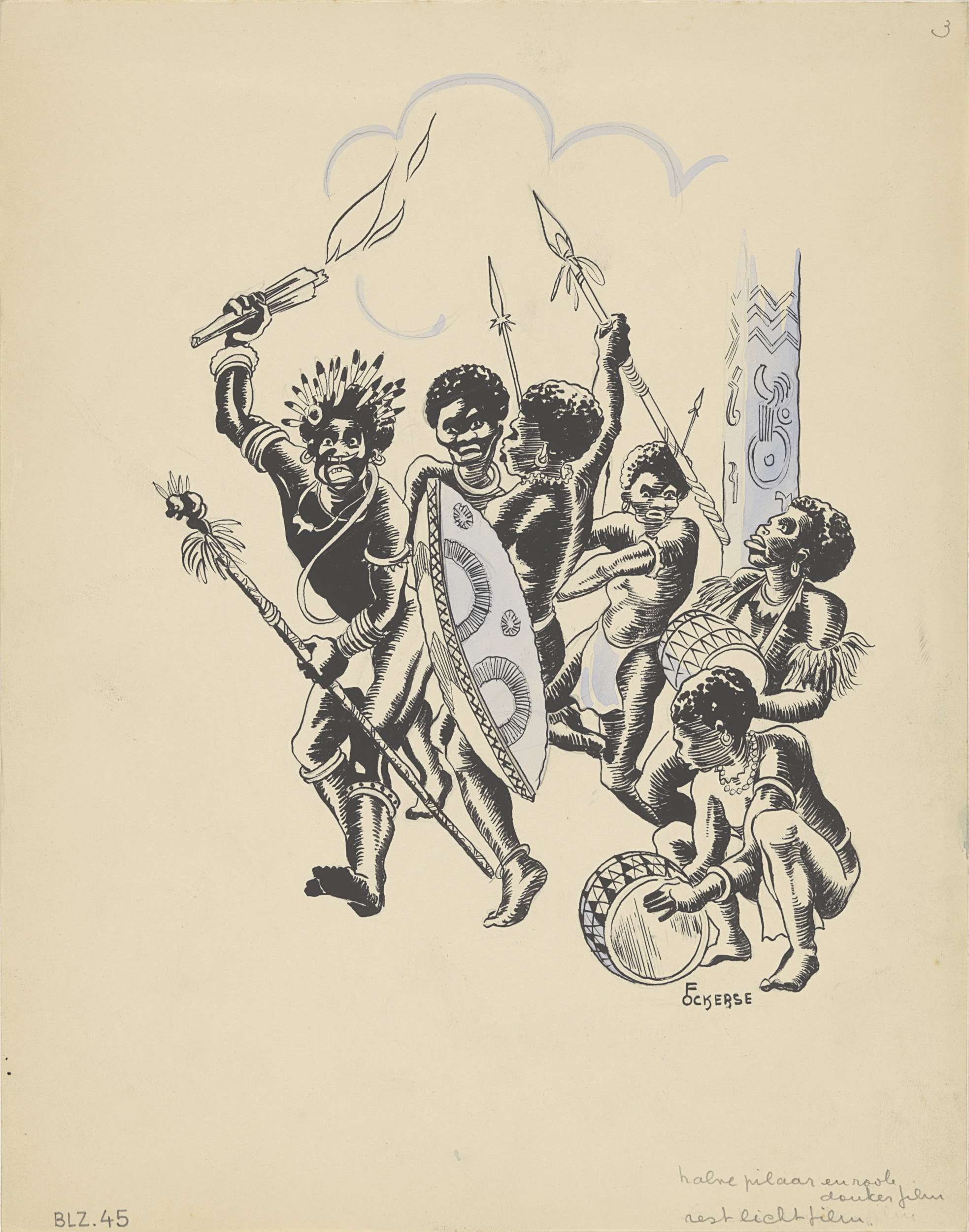 Witte man met vuurwapen tussen de Nieuw-Guineeërs