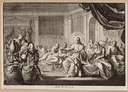 Jezus op de bruiloft te Kana beveelt de dienaren de ...