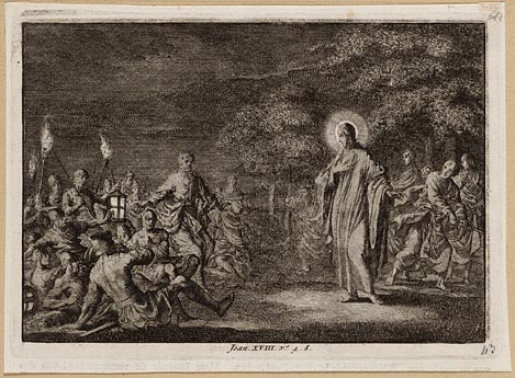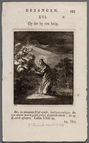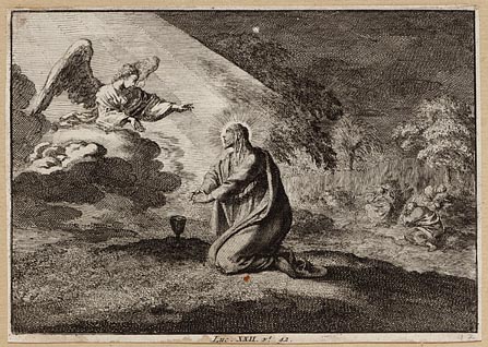 Jezus met de engel in Gethsemané terwijl zijn discip...