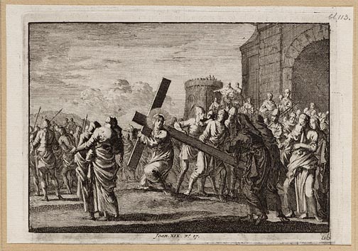 Ter hoogte van de stadspoort valt Jezus onder het ge...