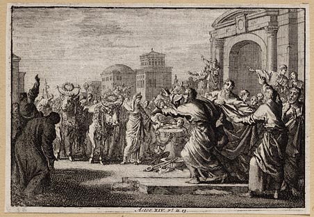 De offerstieren te Lystre tot Paulus Barnabas gebracht