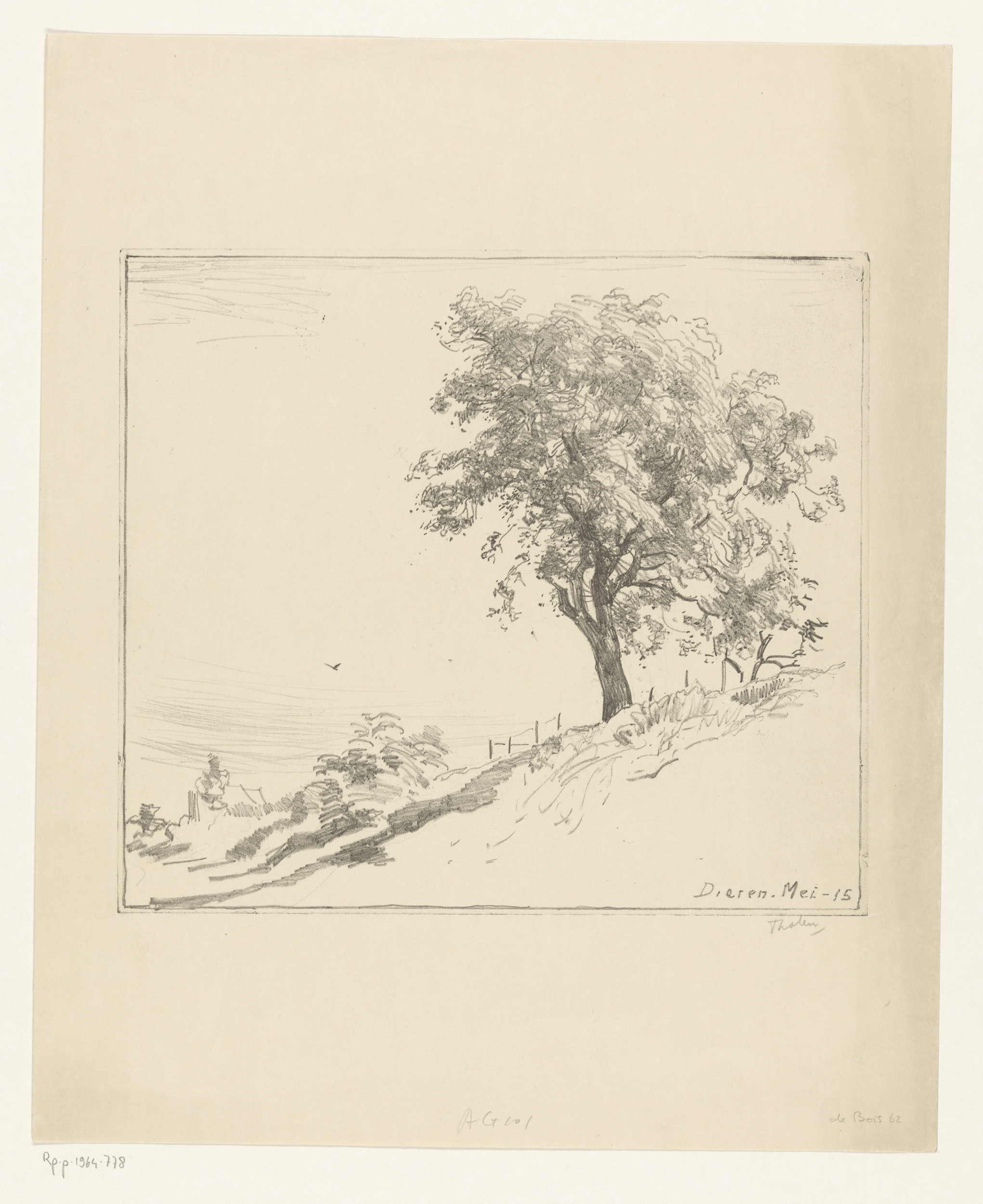 Landschap met boom op een dijk te Dieren