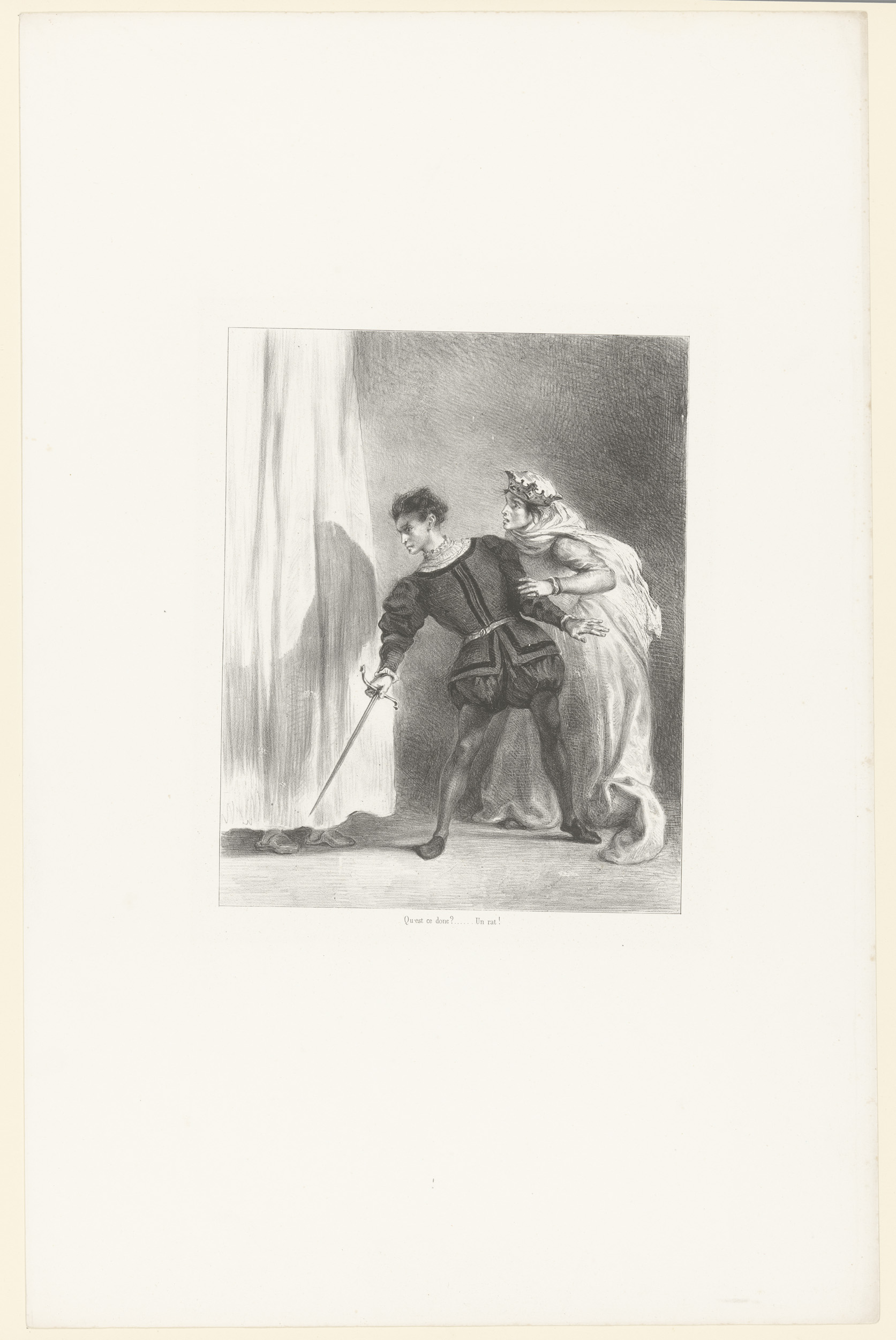 Hamlet ontdekt Polonius achter het gordijn