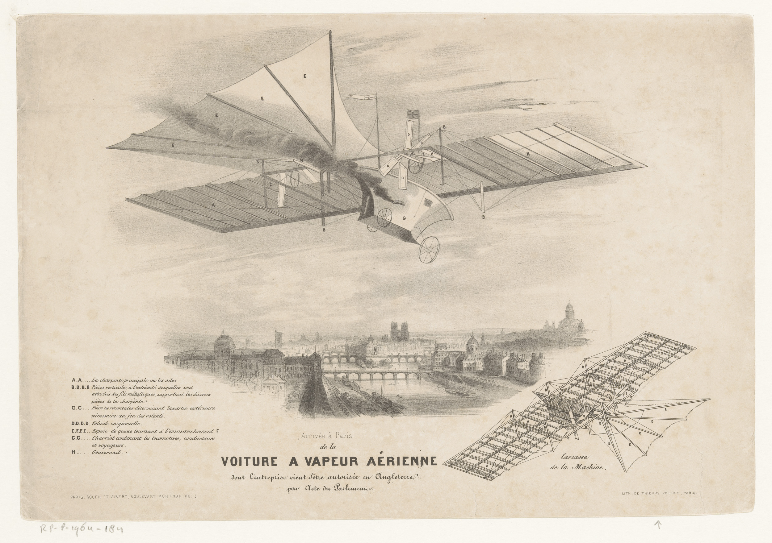 Lucht-stoomauto boven Parijs