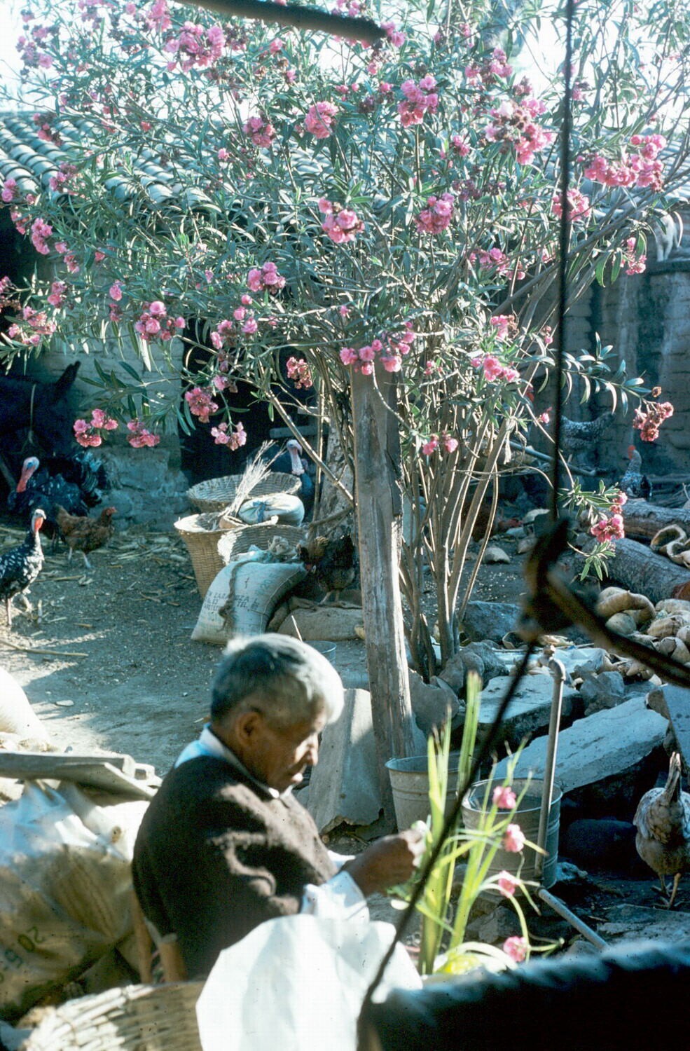 vrouw, op rug gezien, halve kalebas als hoofddeksel