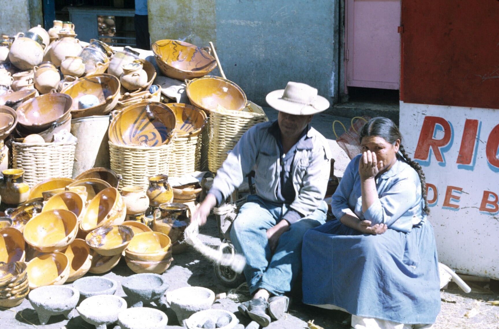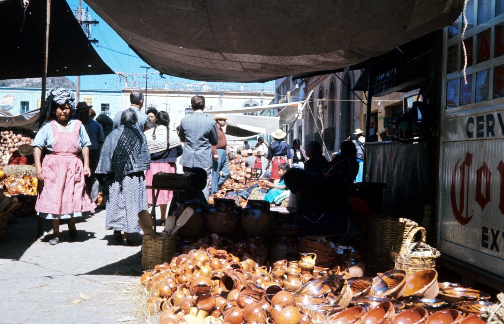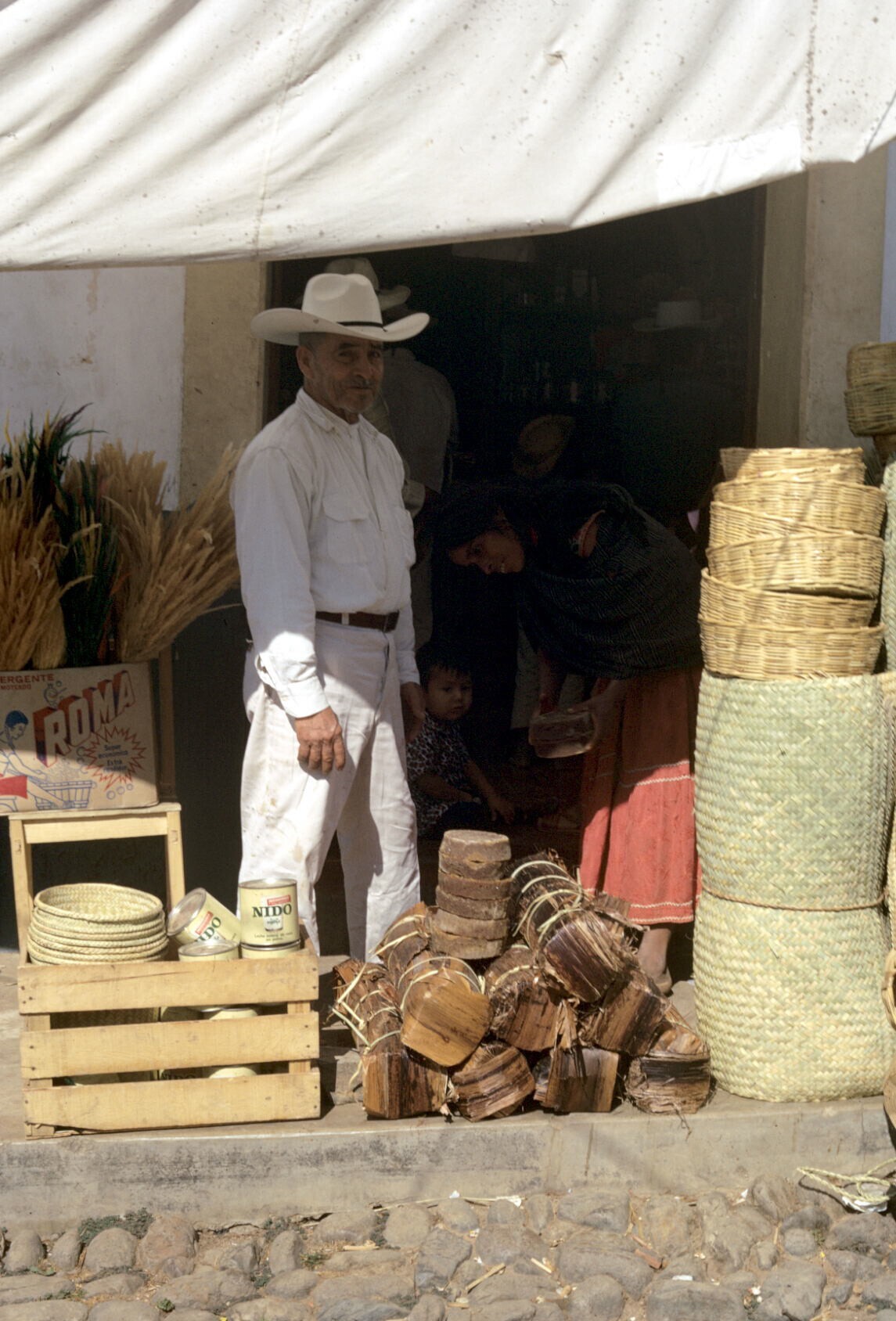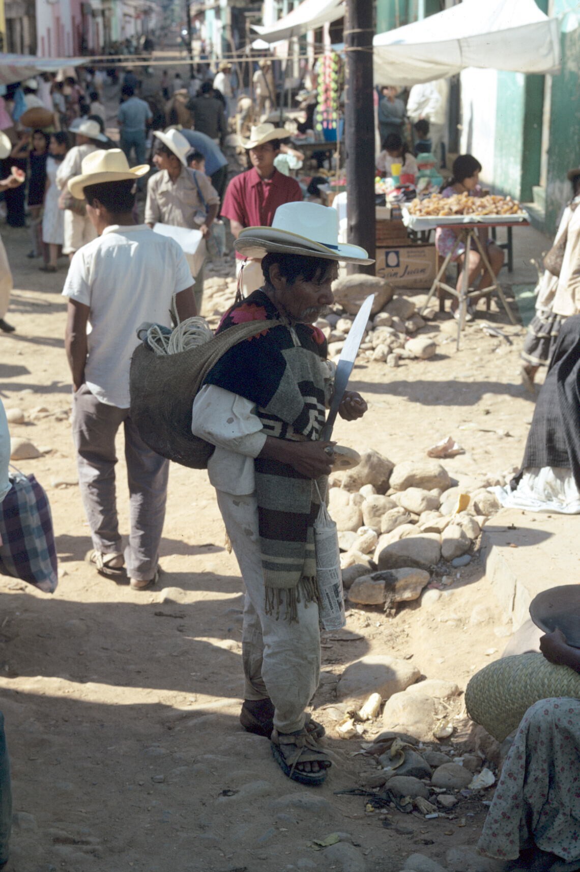 Trique vrouwen op markt, een van hen faja (ceintuur)...