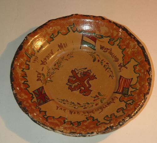 Wandbord bruin aardewerk beschilderd