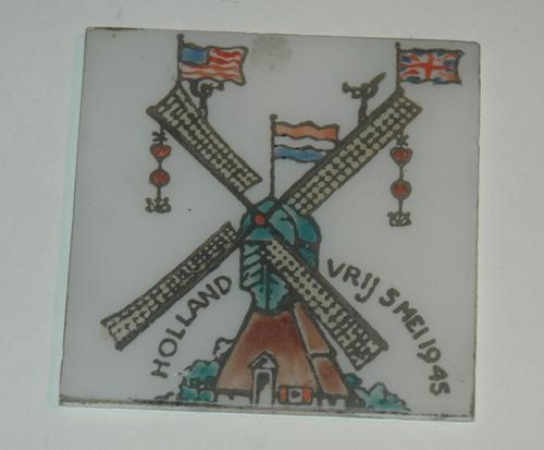 Tegel beschilderd met Nederlandse vlag en kruis