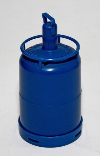 Shell butagasflesje als spaarpot. Blauw plastic model.