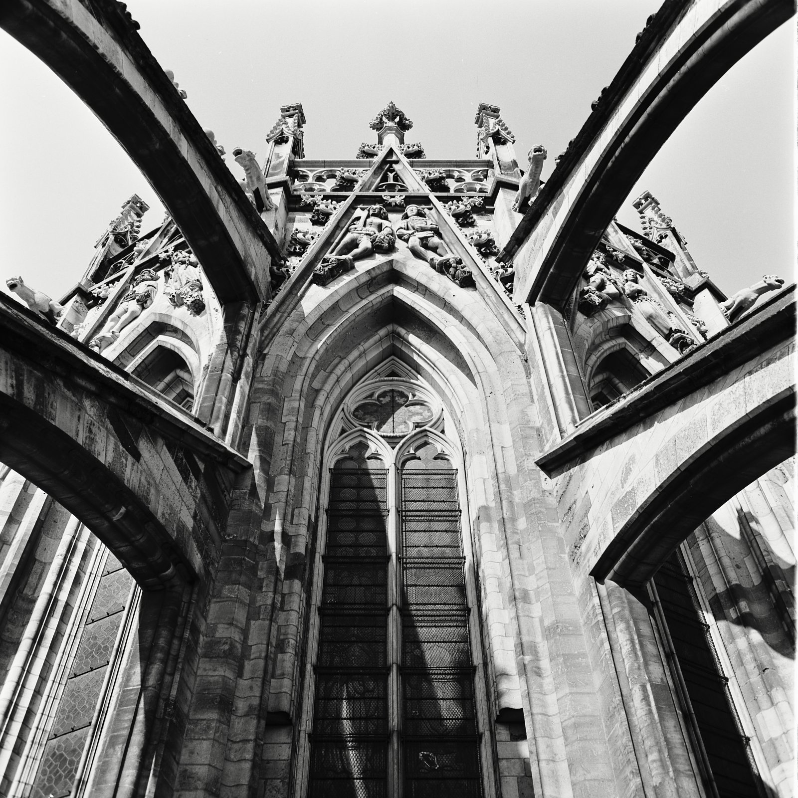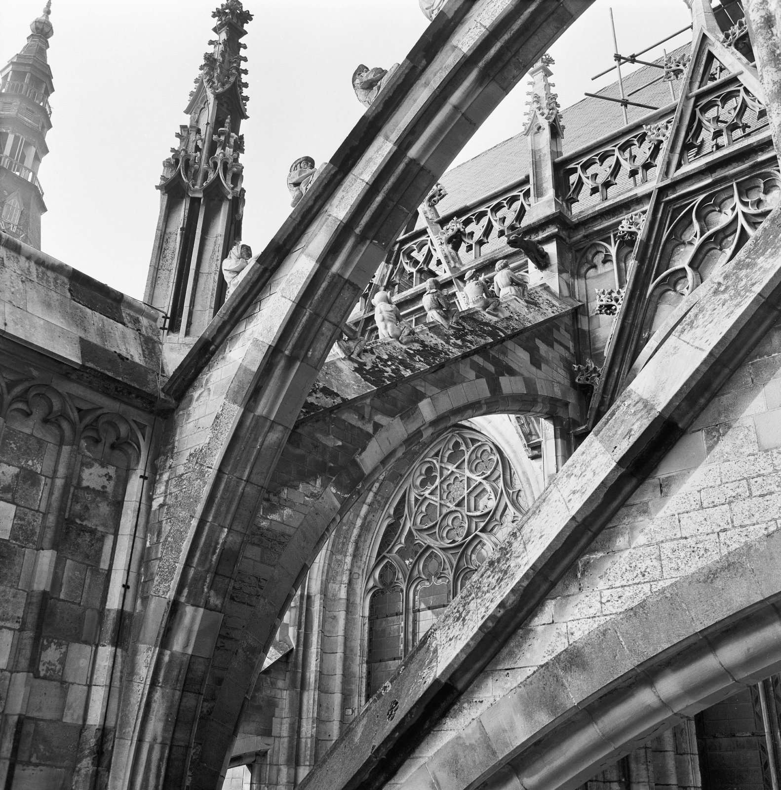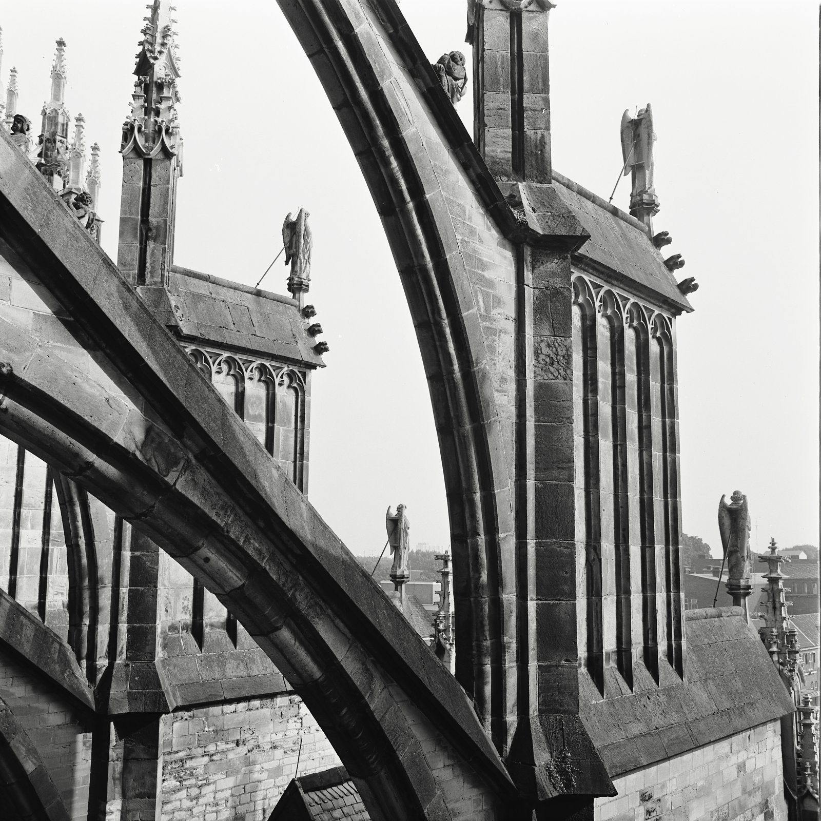 Overzicht van luchtbogen aan de zuidzijde van het schip