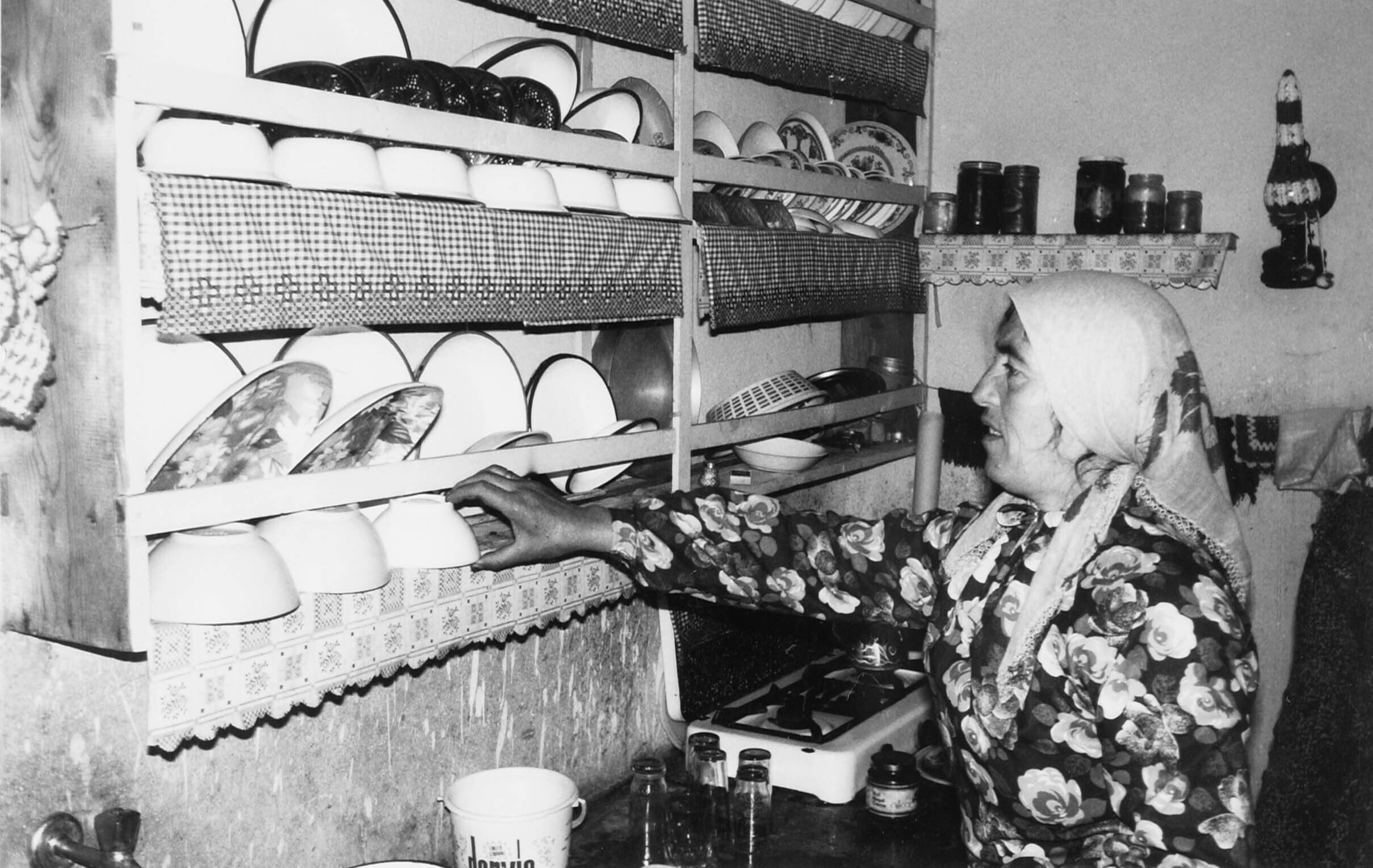 Mevrouw in haar keuken bij een stapel yufka, dit zij...