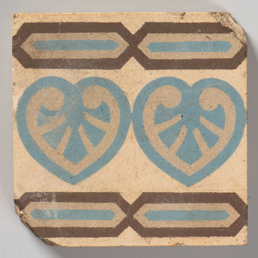 vloertegel van aardewerk, voorstellende ornament, ve...