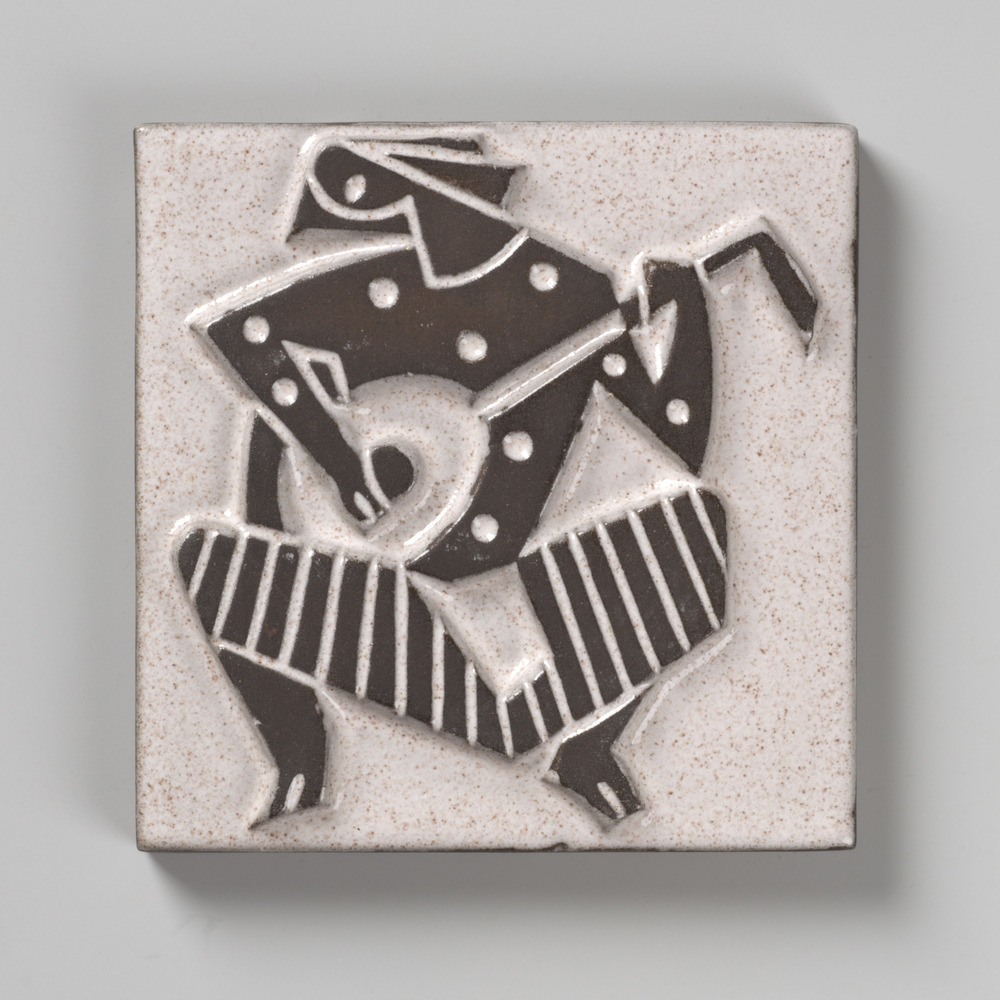 tegel van keramiek met tinglazuur, voorstellende: dr...