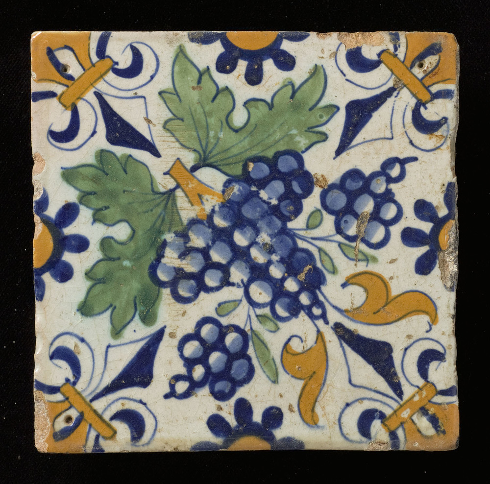 tegel van aardewerk met tinglazuur, voorstellende: v...