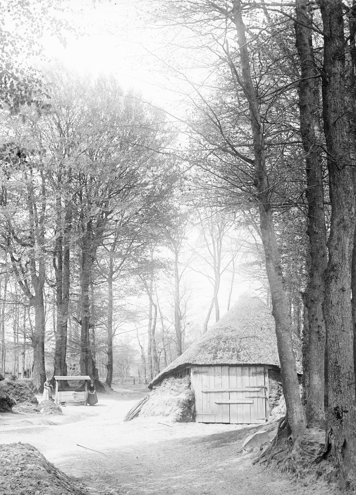 Zwart-wit foto van het tijdelijk Postkantoor in Aerd...