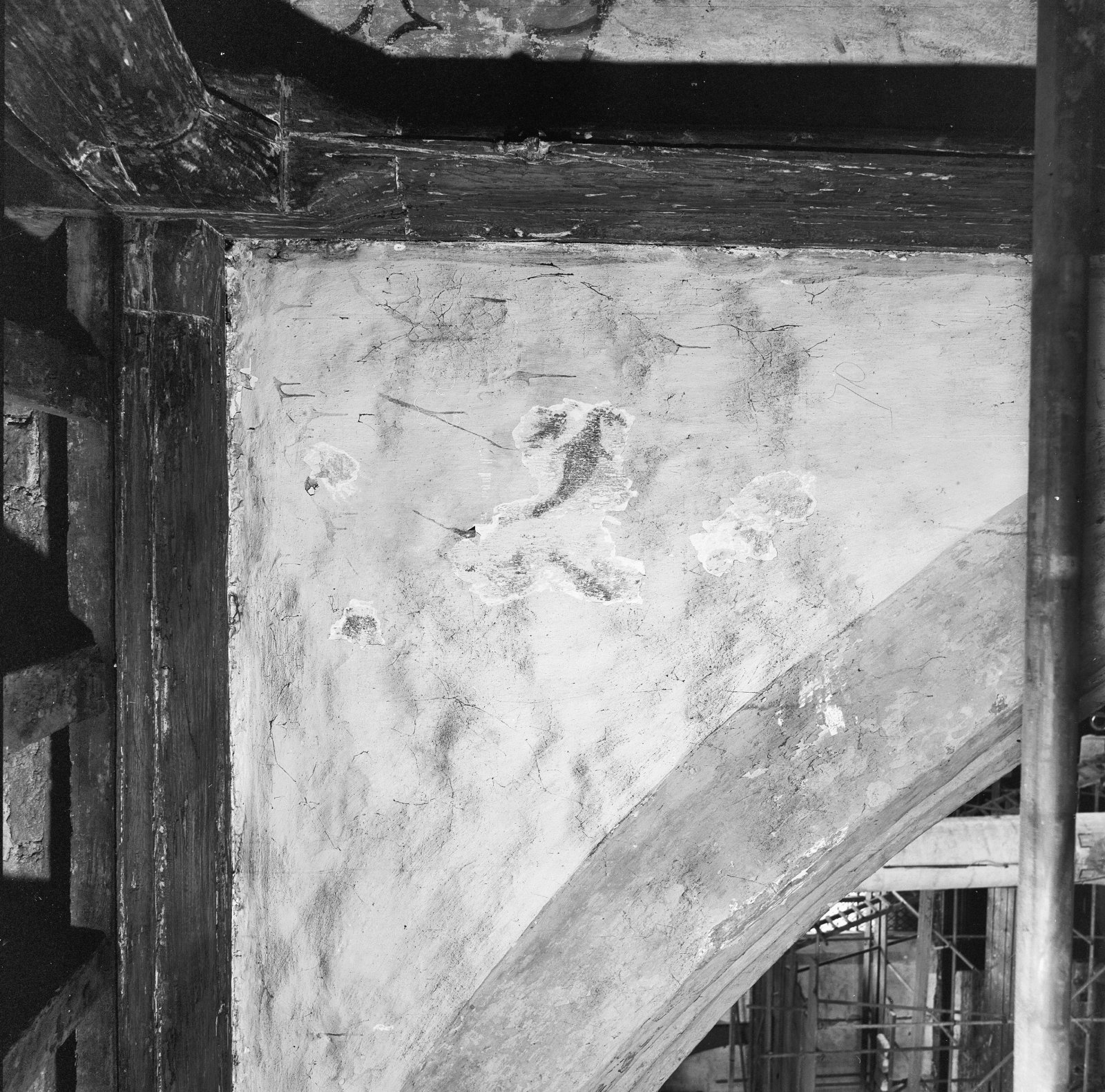 Interieur, overzicht met kap en nieuw aangebrachte b...