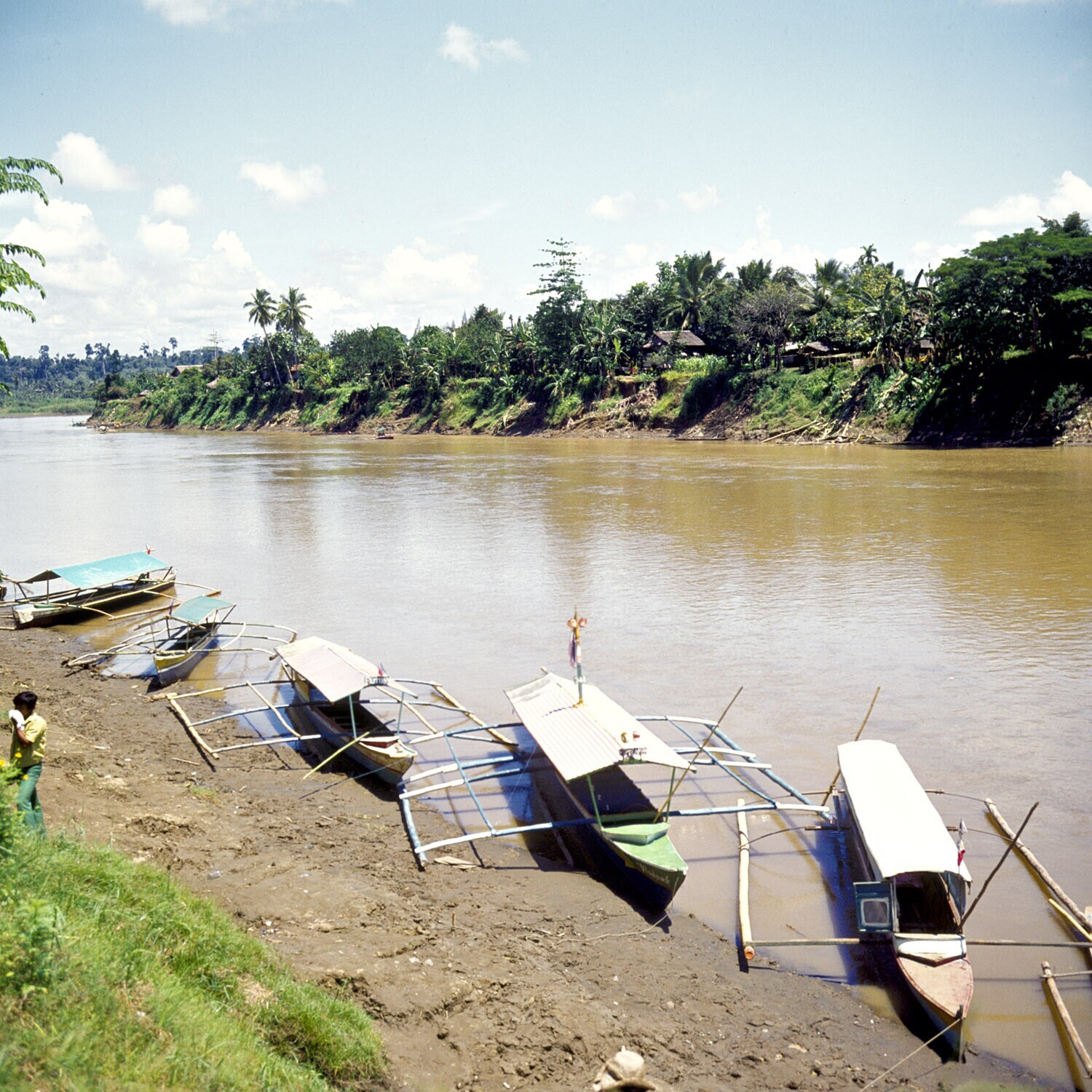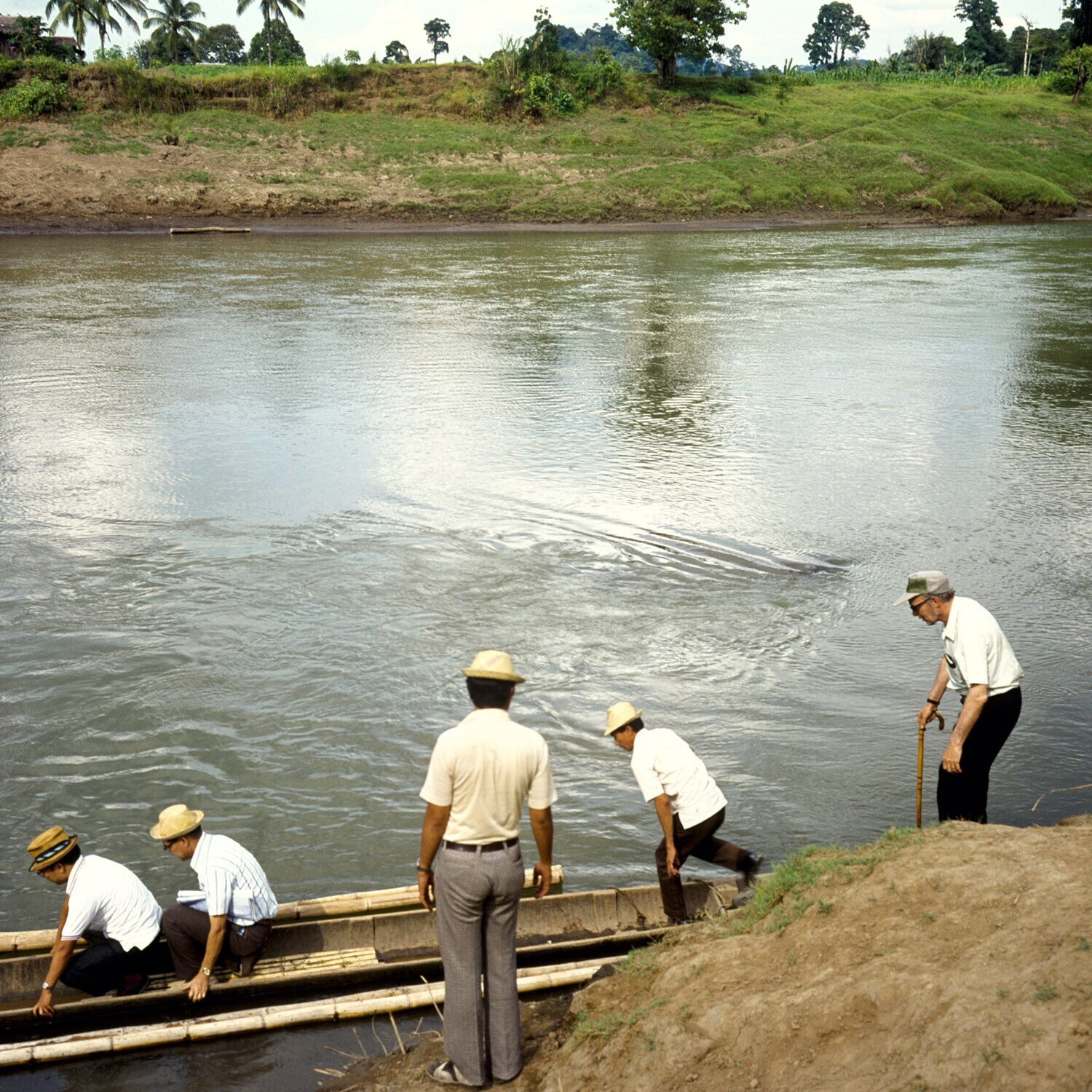 Rivier-oversteek door leden van het Agusan rivierpro...