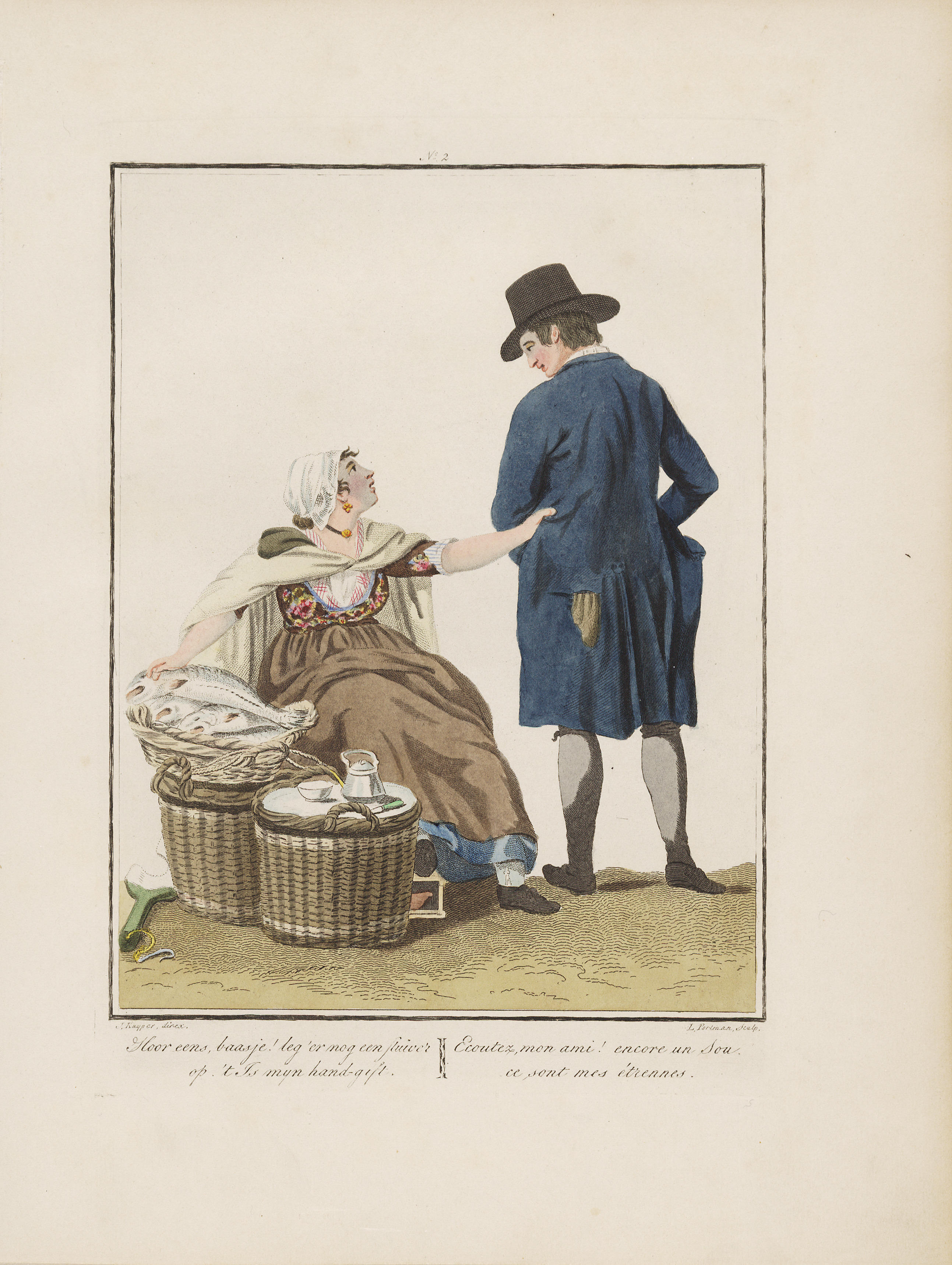 Amsterdamse visverkoopster en ambachtsman (gravure)