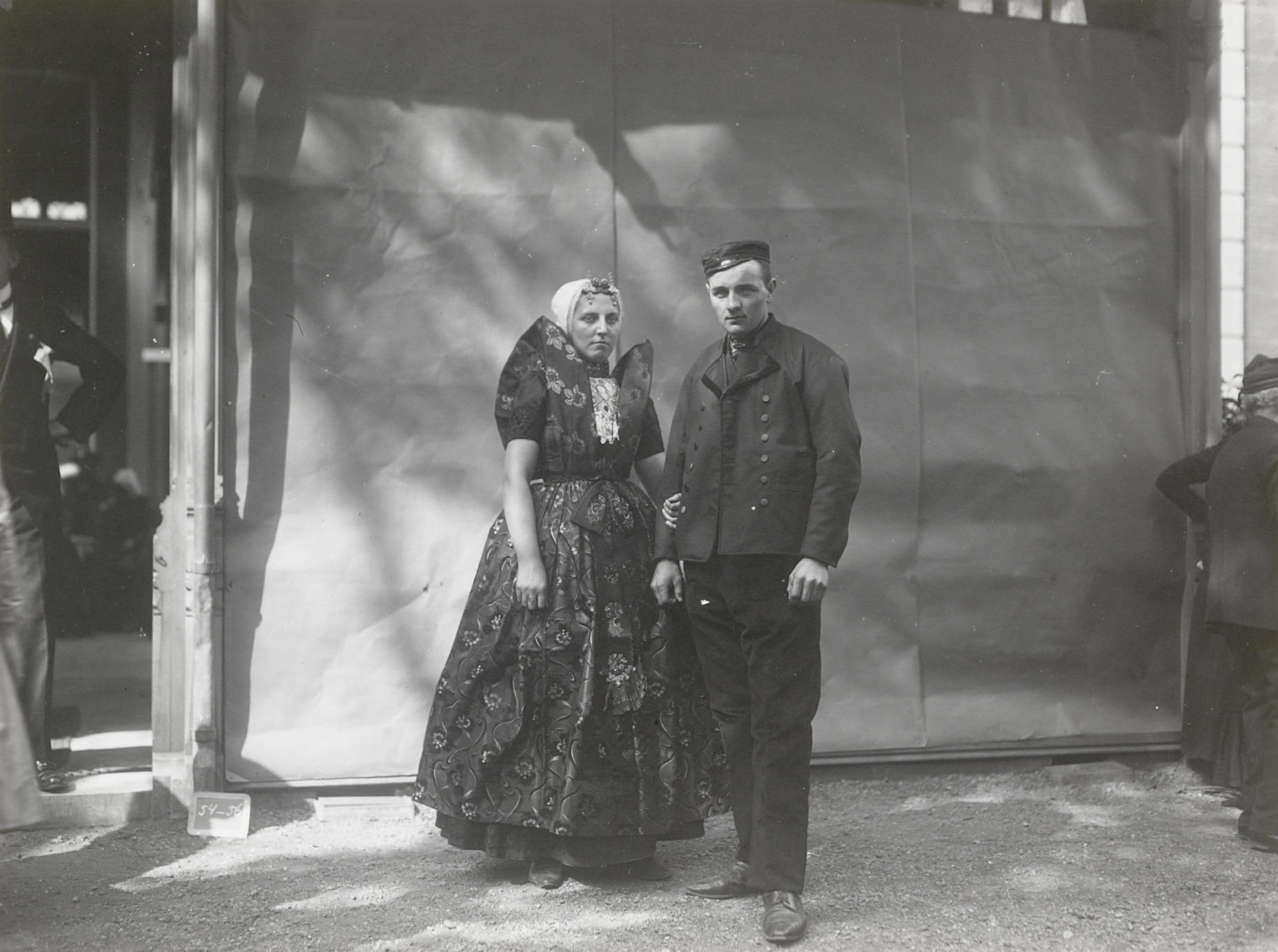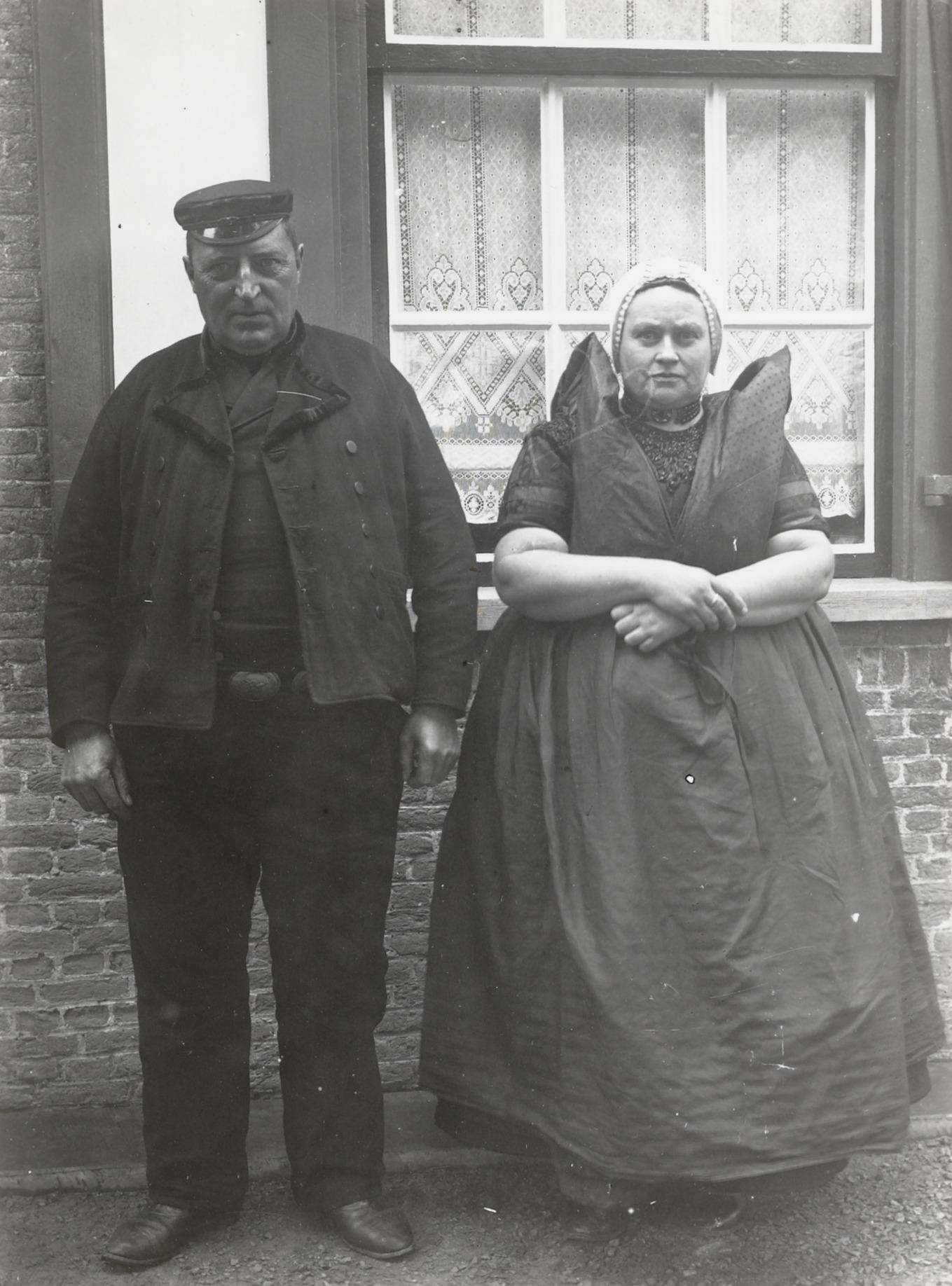 Man en vrouw in Axelse dracht, 1915 (zwart-wit foto)