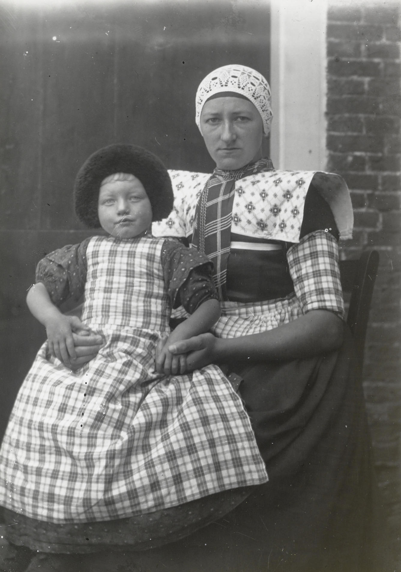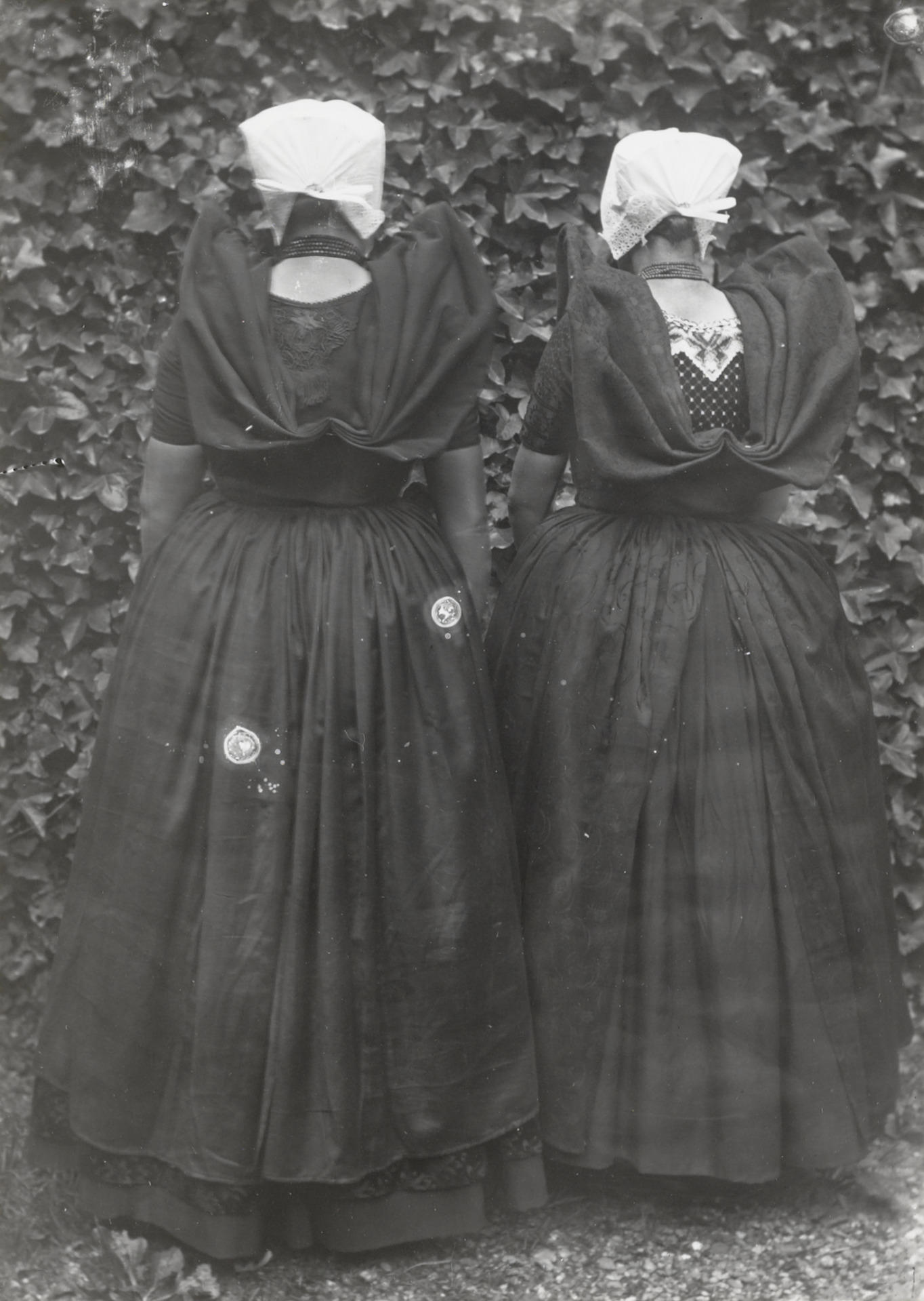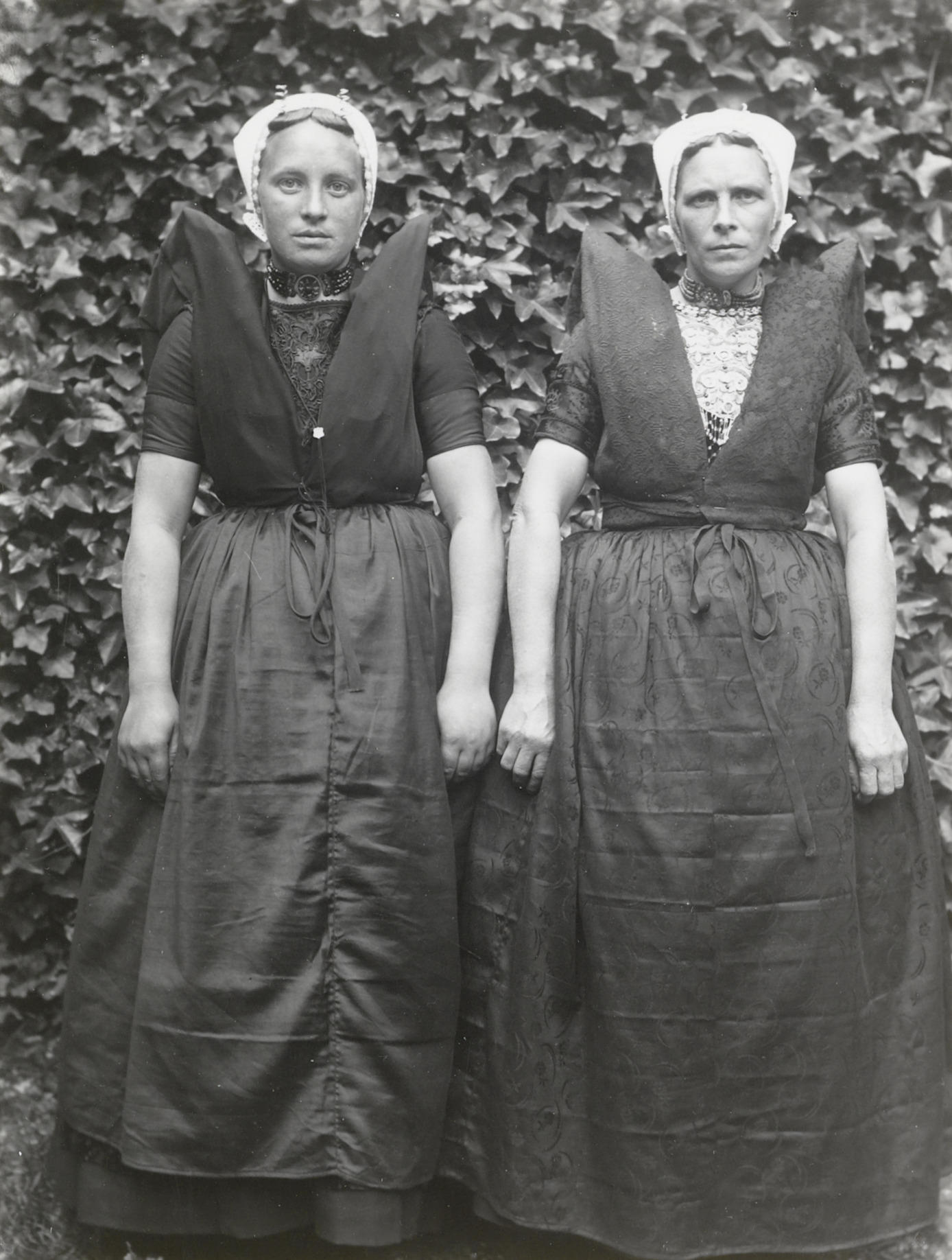 Twee vrouwen in Axelse dracht, 1915 (zwart-wit foto)