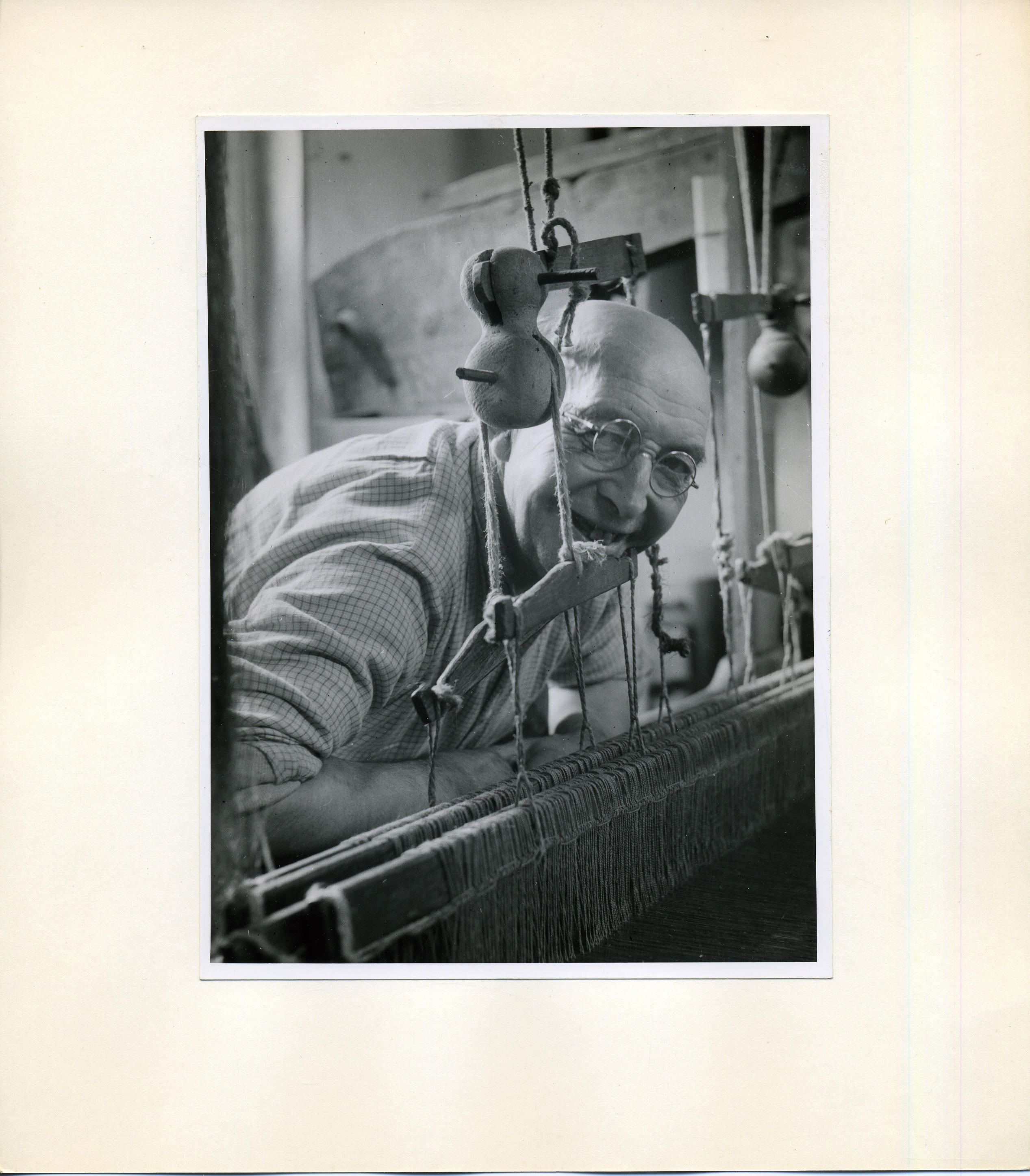 Opgeplakte foto van wever Eilers uit Meppel, 1946 (z...