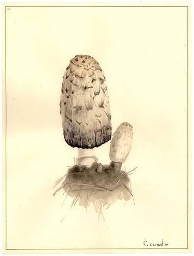 Aquarel met pen: Geschubde inktzwam