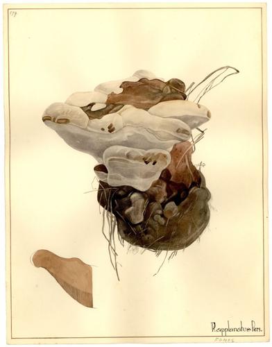Aquarel met pen: Platte tonderzwam