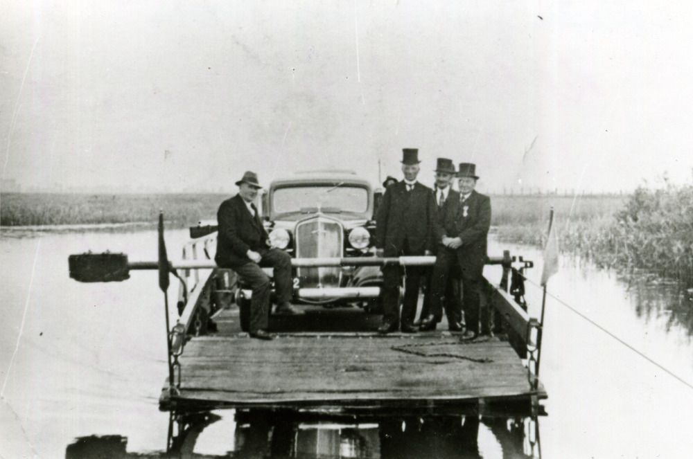 Zwart-wit foto van het pontveer van Aerdt juni 1935